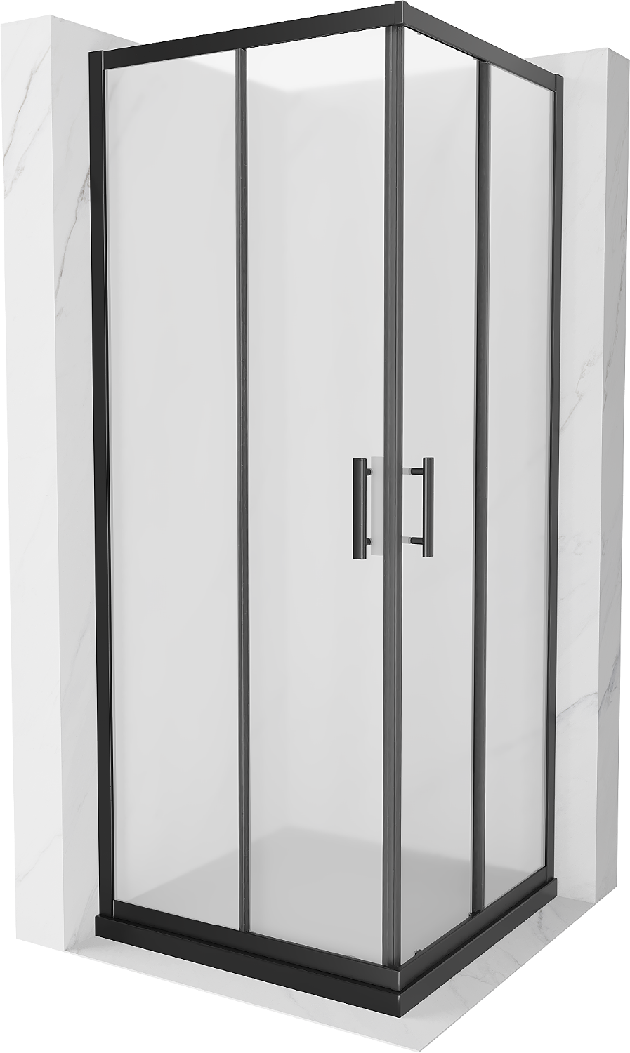 Mexen Rio quadratische Duschkabine 90 x 90 cm, matt, schwarz + Flat Duschwanne, schwarz - 860-090-090-70-30-4070B