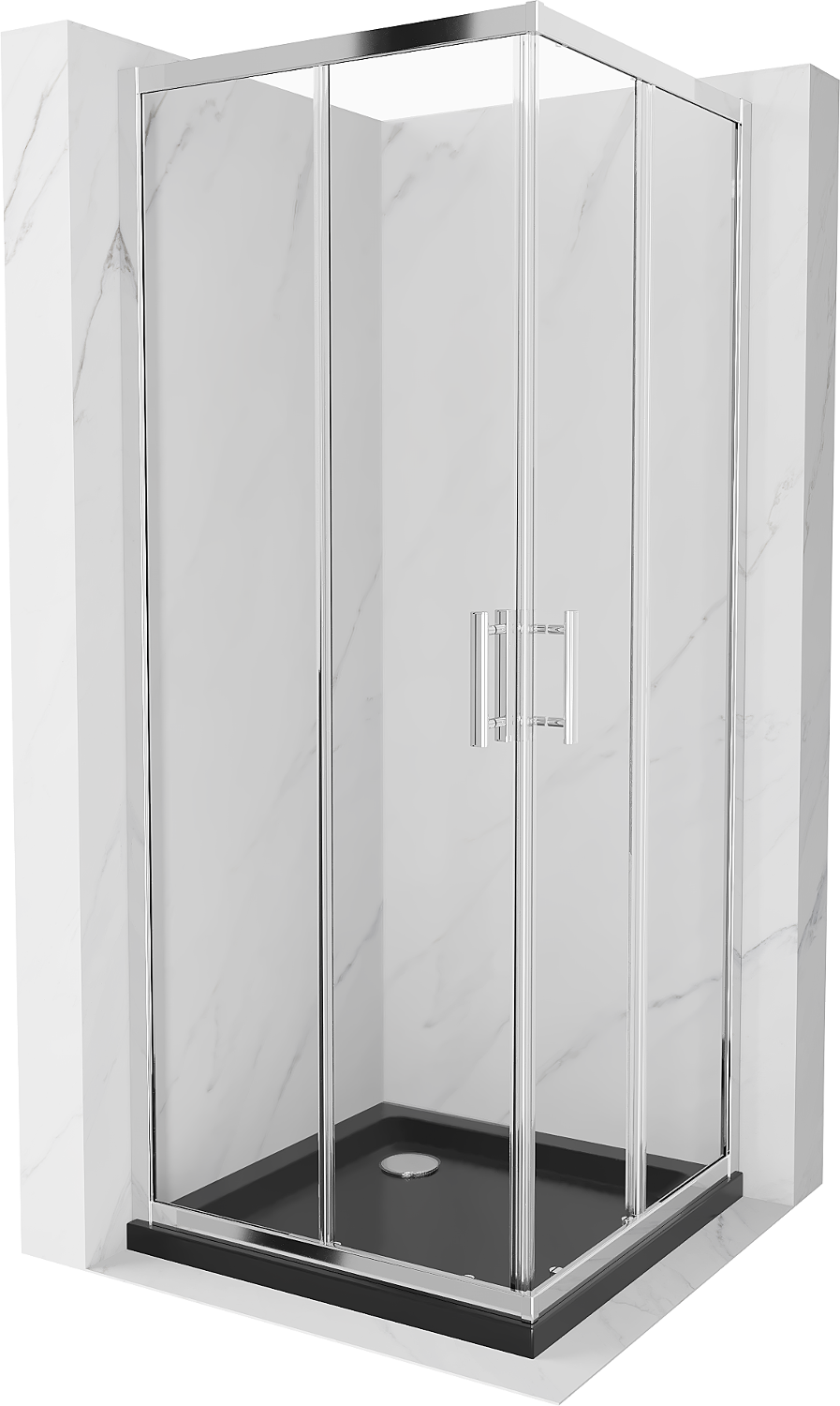 Mexen Rio quadratische Duschkabine 70 x 70 cm, transparent, Chrom + Duschwanne Flat, schwarz - 860-070-070-01-00-4070