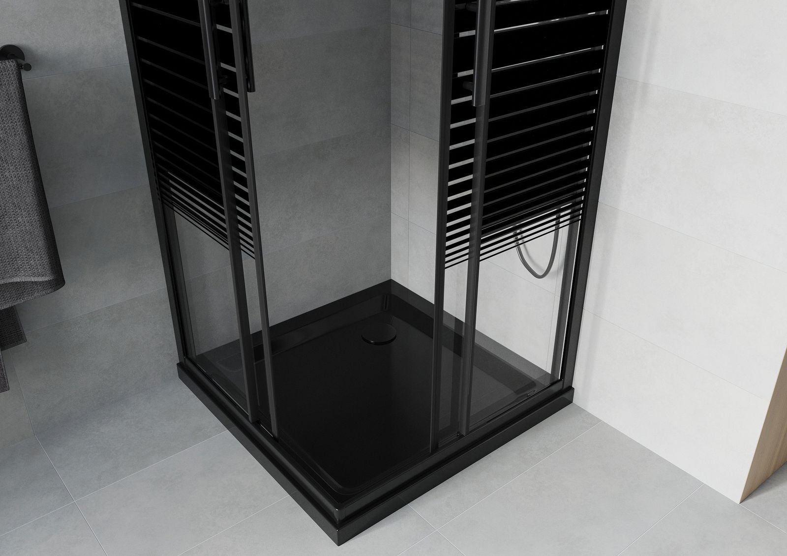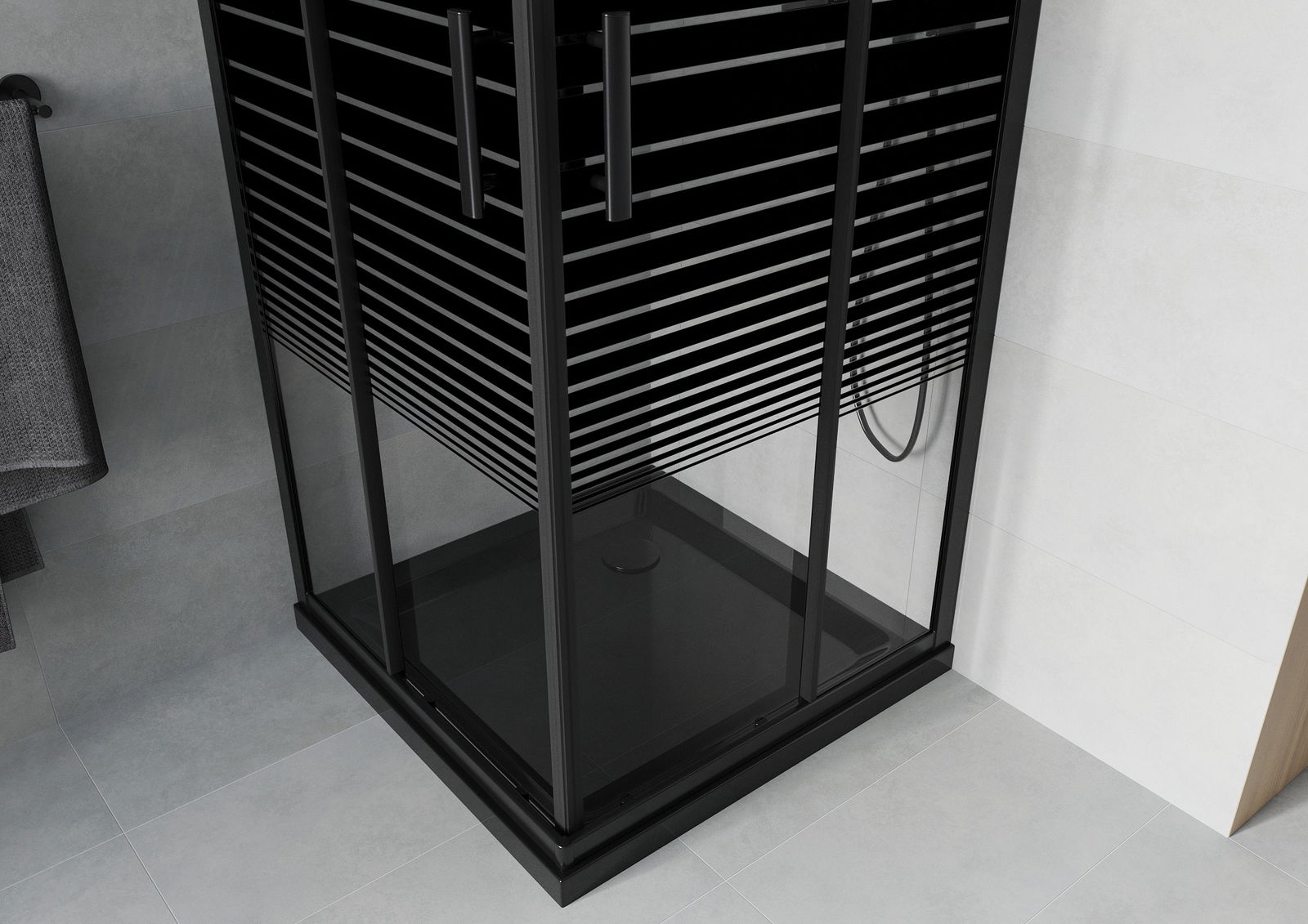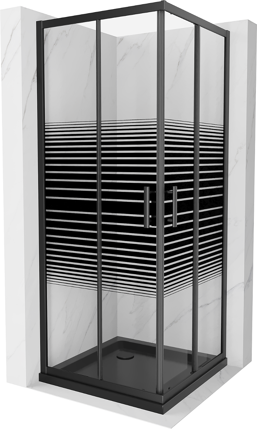 Mexen Rio quadratische Duschkabine 70 x 70 cm, schwarze Streifen, schwarz + Flat-Duschwanne, schwarz - 860-070-070-70-20-4070B