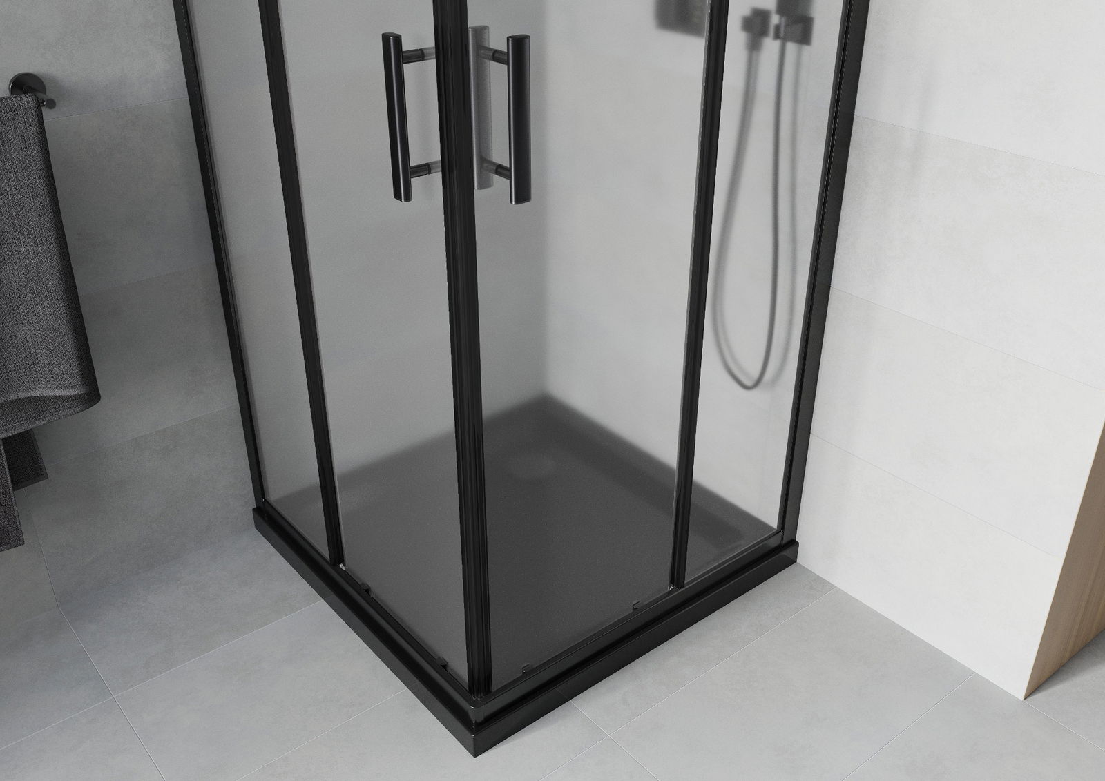 Mexen Rio quadratische Duschkabine 70 x 70 cm, mattiert, schwarz + flacher Duschwanne, schwarz - 860-070-070-70-30-4070B