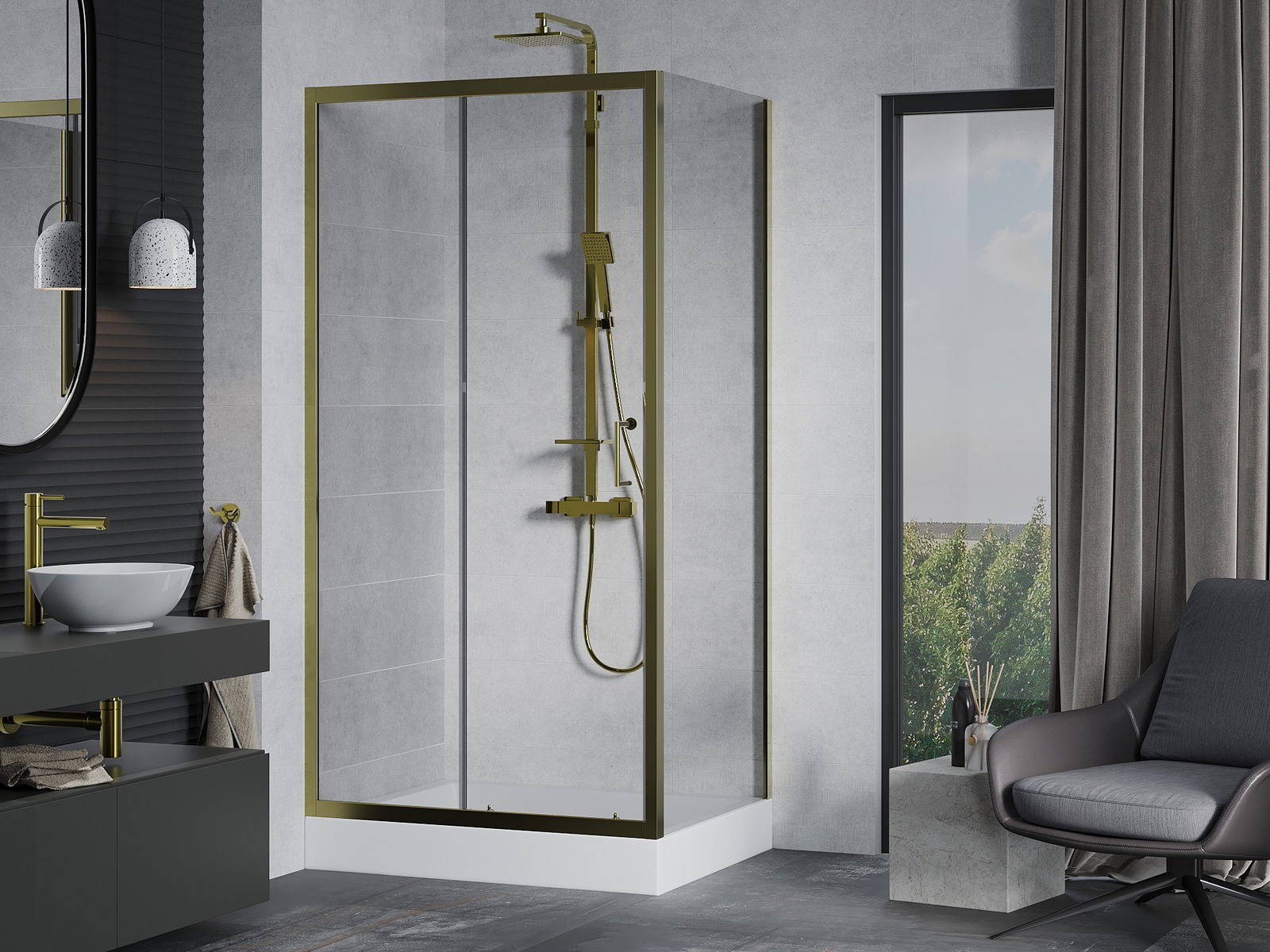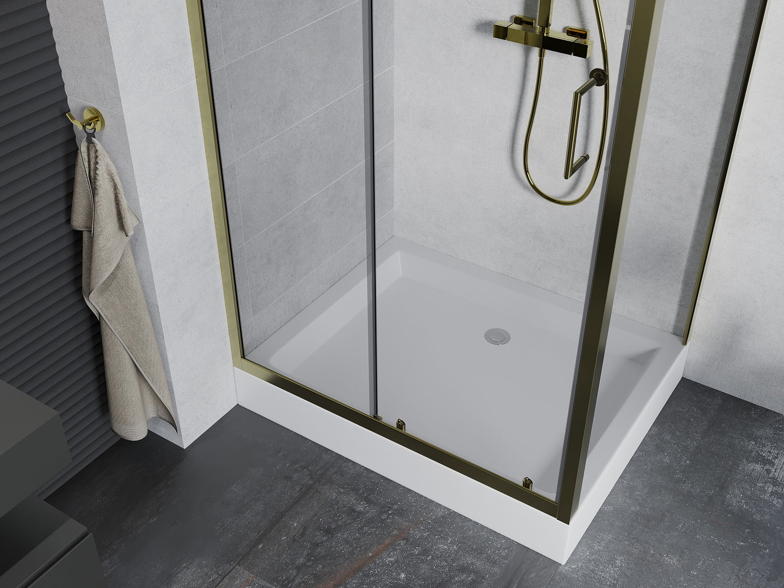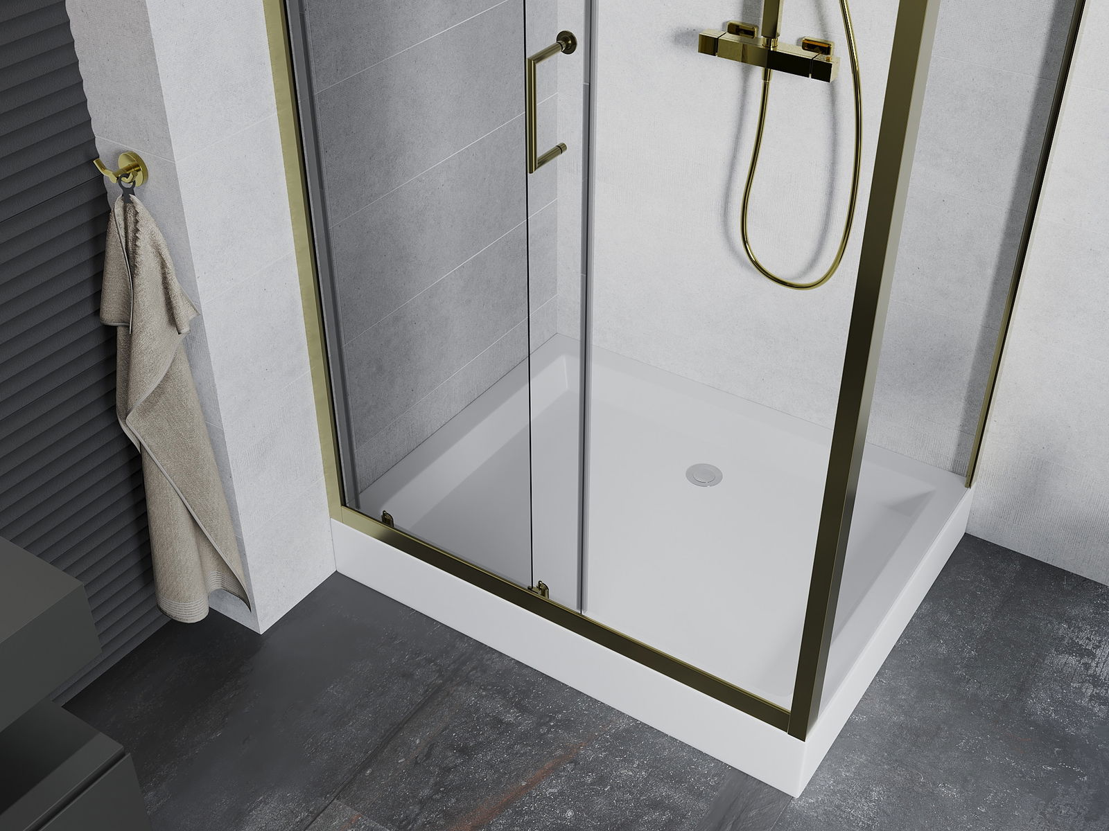 Der praktische und bequeme Griff bestand aus langlebigem und widerstandsfähigem Metall. Die modische Form in Kombination mit einem auf die Farbe der Profile zugeschnittenen Finish verleiht dem Ganzen einen modernen und stilvollen Look und betont die Ästhetik jedes Badezimmers.
