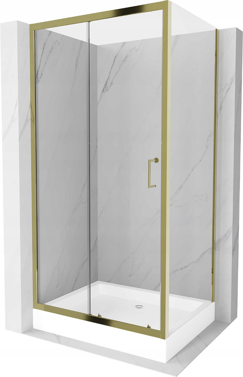 Mexen Apia Duschkabine Schiebetür 100 x 80 cm, transparent, gold + Duschwanne Rio - 840-100-080-50-00-4510