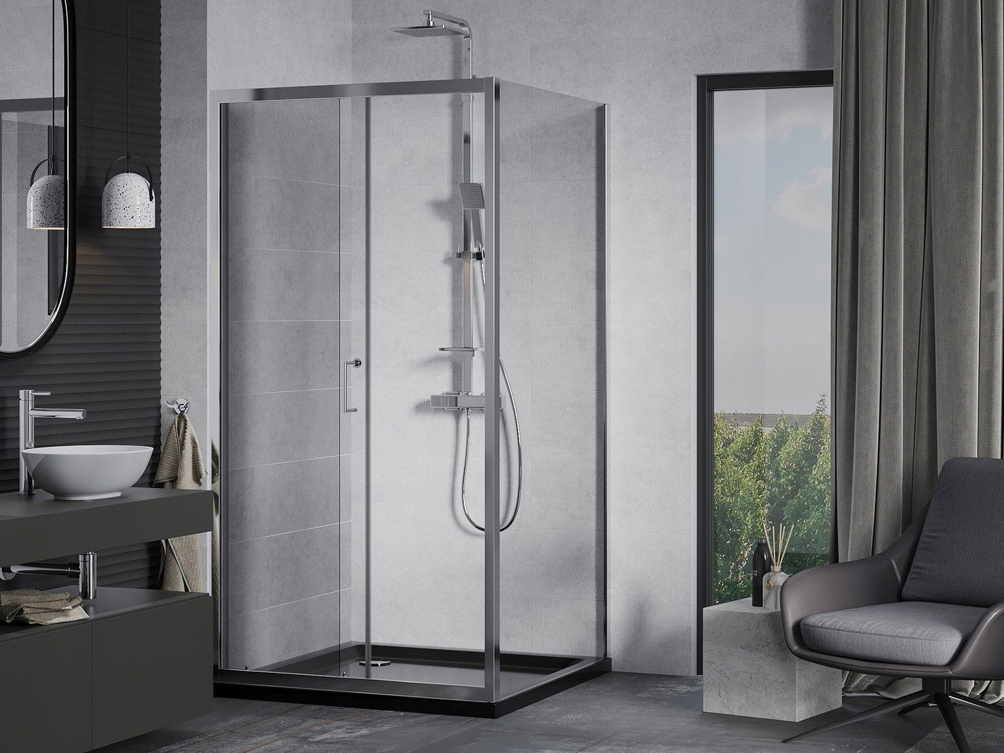 Der praktische und bequeme Griff bestand aus langlebigem und widerstandsfähigem Metall. Die modische Form in Kombination mit einem auf die Farbe der Profile zugeschnittenen Finish verleiht dem Ganzen einen modernen und stilvollen Look und betont die Ästhetik jedes Badezimmers.