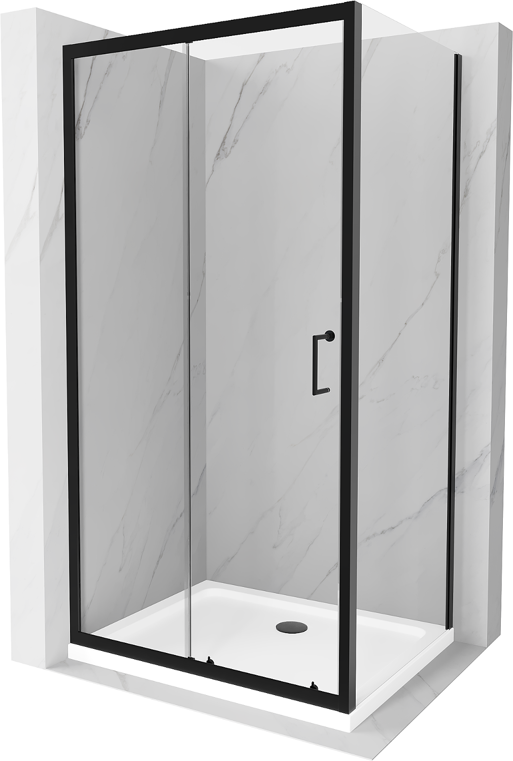 Mexen Apia Duschkabine zum Schieben 140 x 90 cm, transparent, schwarz + Flat-Duschtasse, weiß- 840-140-090-70-00-4010B