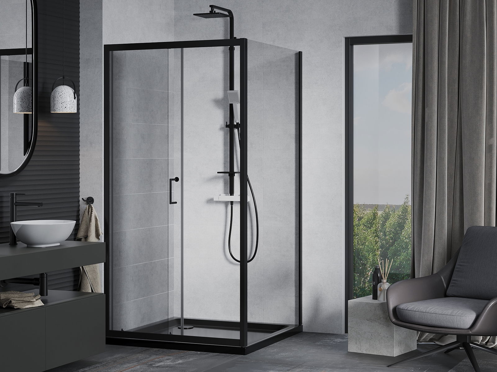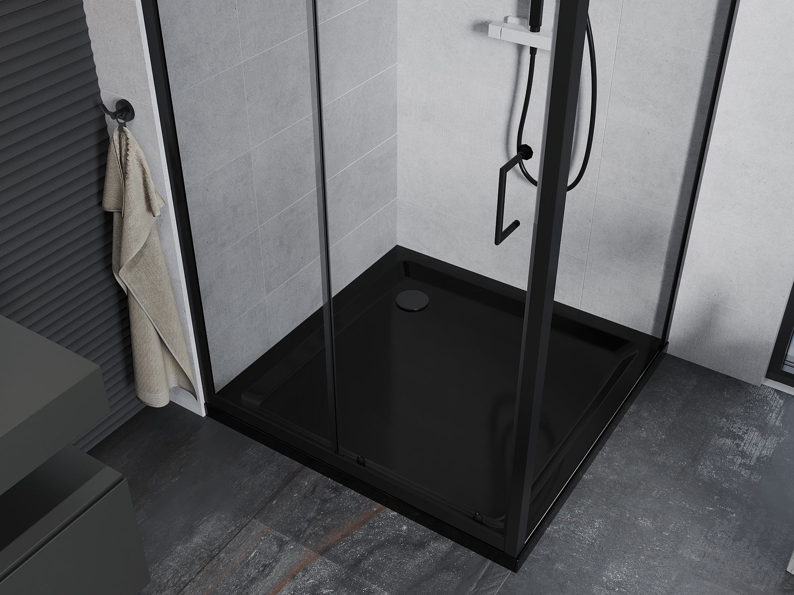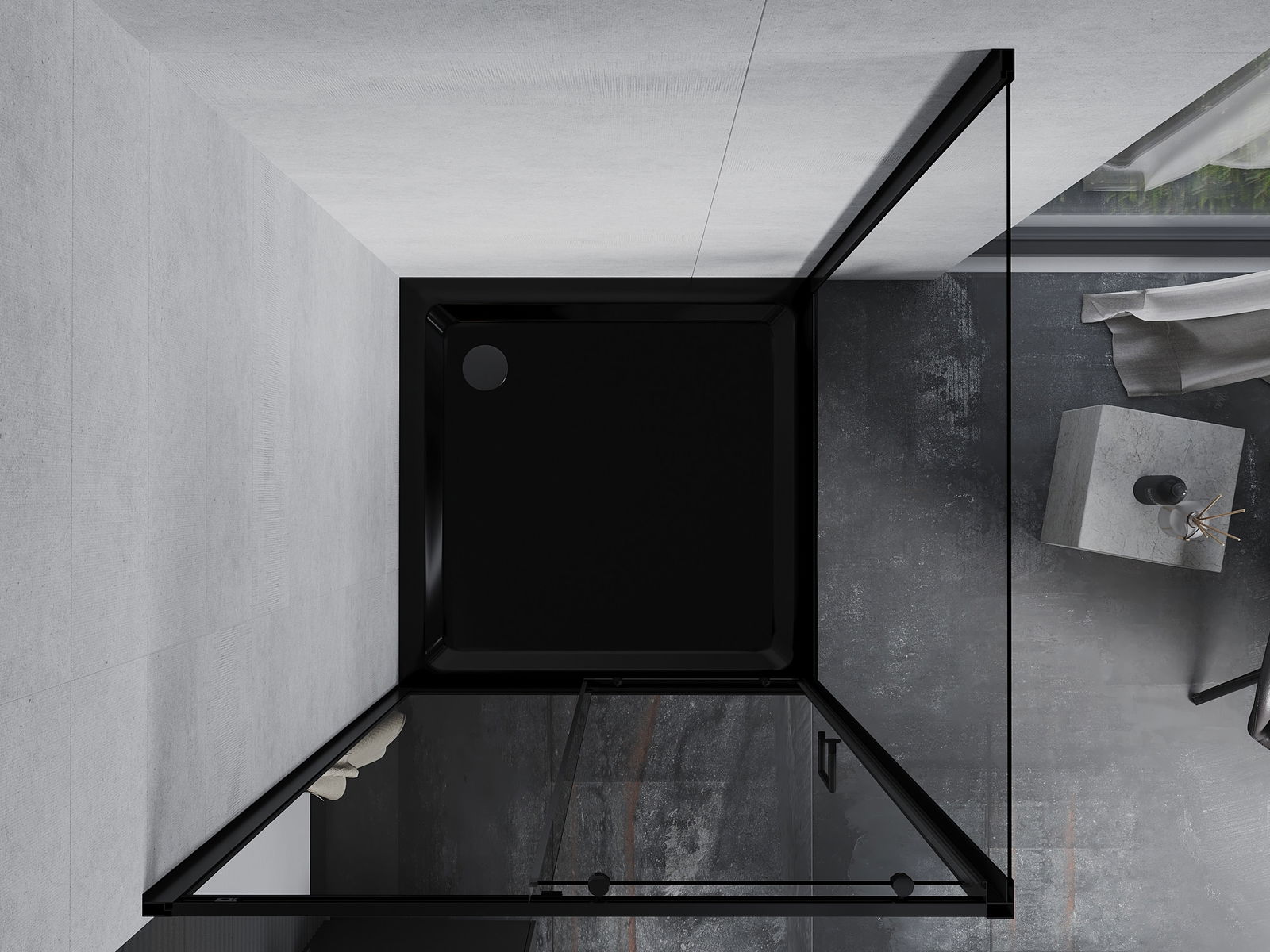 Mexen Apia Duschkabine Schiebetür 90 x 90 cm, transparent, schwarz + Duschwanne Flat, schwarz - 840-090-090-70-00-4070B
