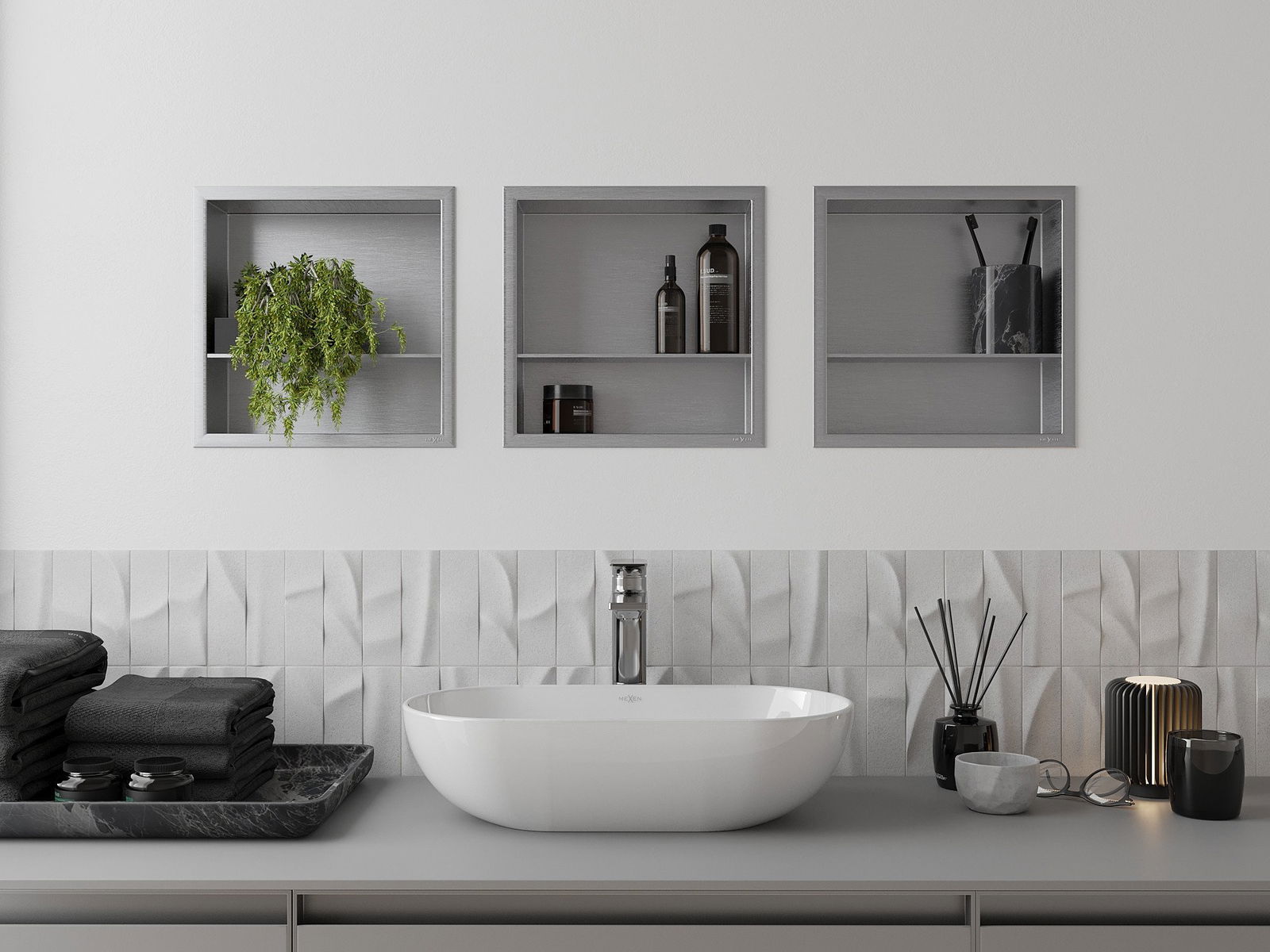 Mexen X-Wall-R Nischenregal mit Flansch und Regal 30 x 30 cm, Inox - 1910303010S