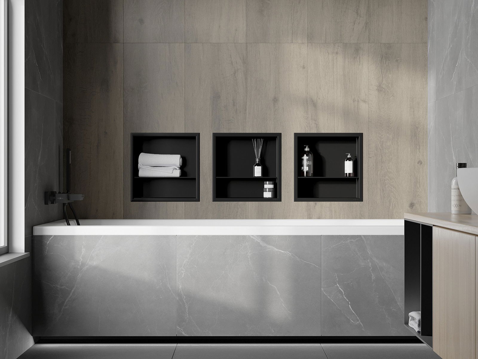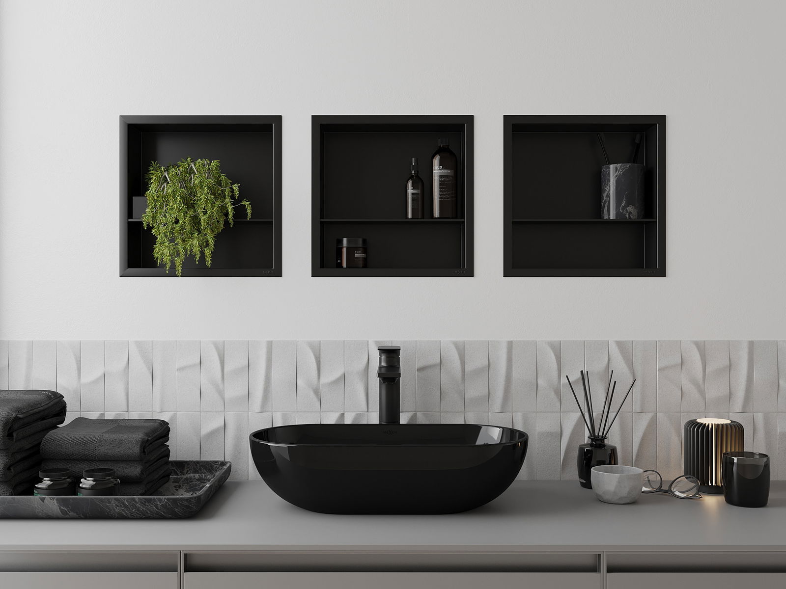 Mexen X-Wall-R Nischentablett mit Flansch und Ablage 30 x 30 cm, schwarz - 1970303010S