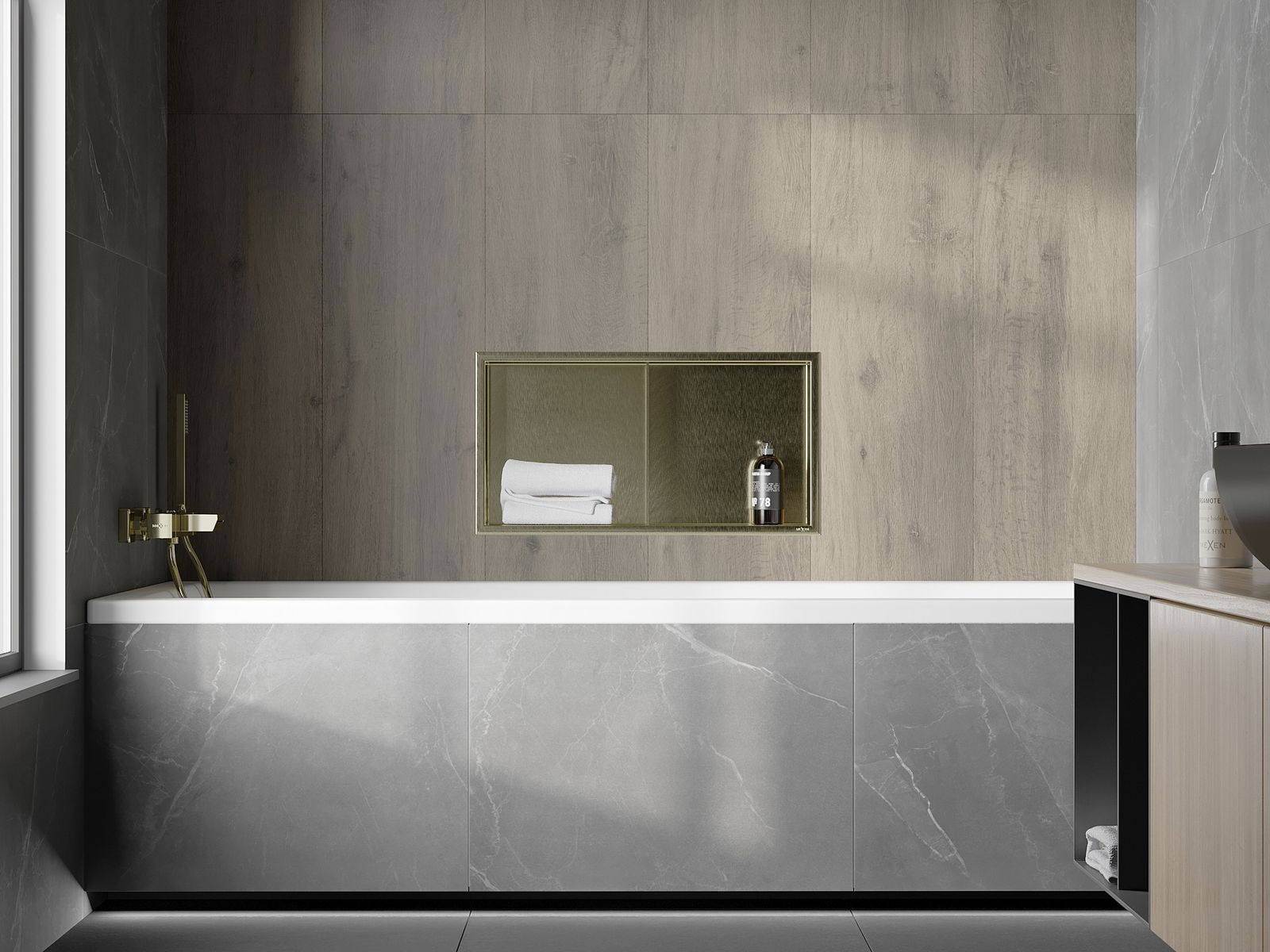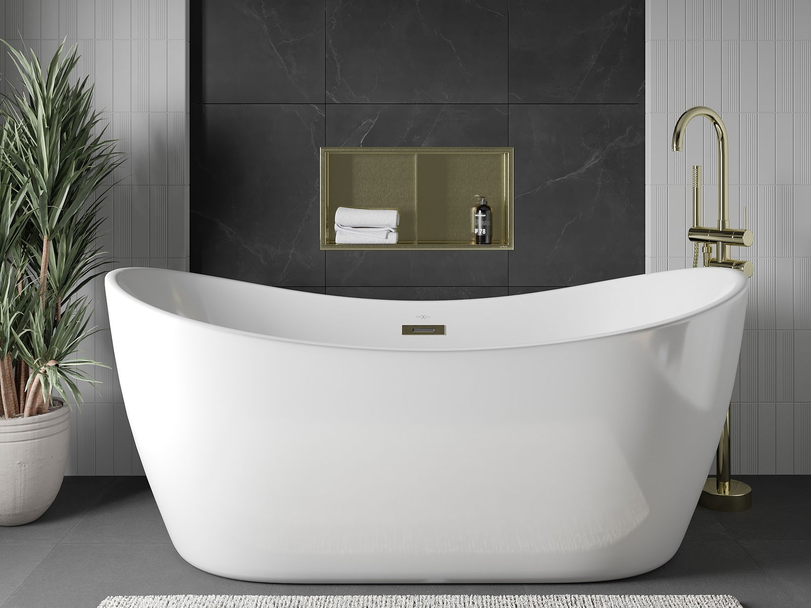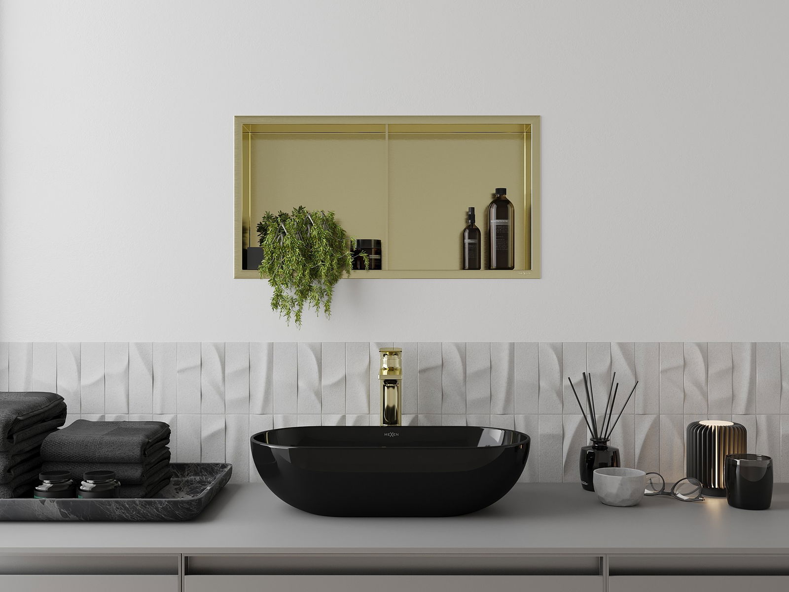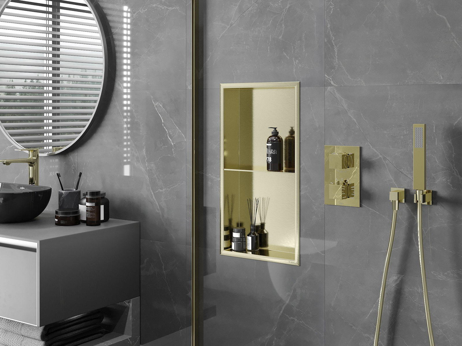 Mexen X-Wall-R Nischenregal mit Flansch und Regal 60 x 30 cm, gebürstetes Gold - 1950603010S
