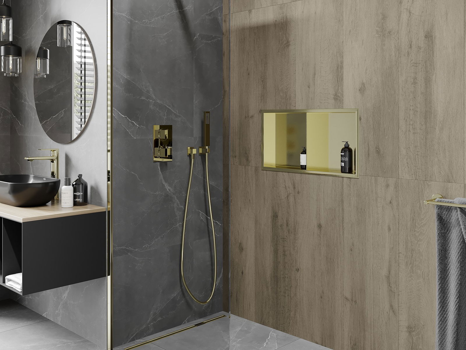 Möglichkeit der Installation in der Wand oder in einem speziell vorbereiteten Gebäude. Es ist eine äußerst moderne und funktionale Lösung, mit der Sie Platz sparen und das Produkt mit der Ästhetik des Innenraums anpassen und eine kohärente Komposition schaffen können.