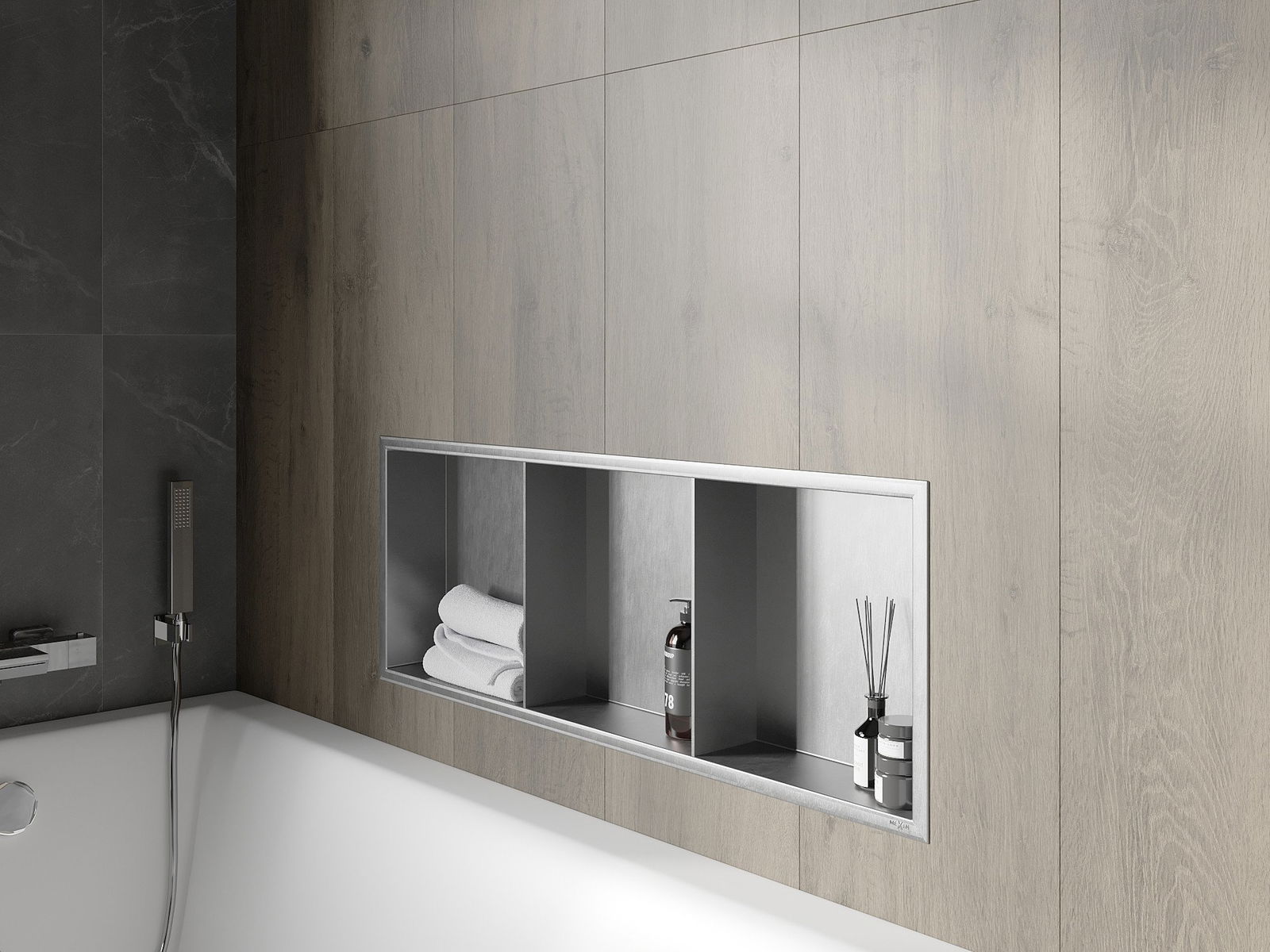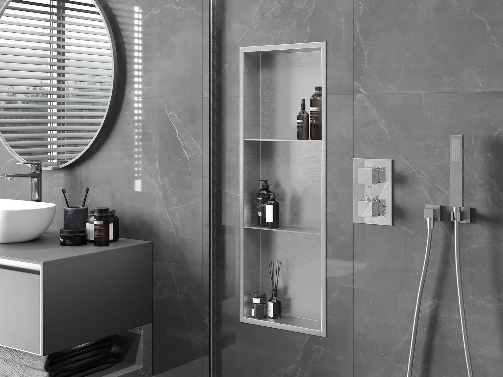 Mexen X-Wall-R Nischenregal mit Flansch und Regal 90 x 30 cm, Inox - 1910903010S