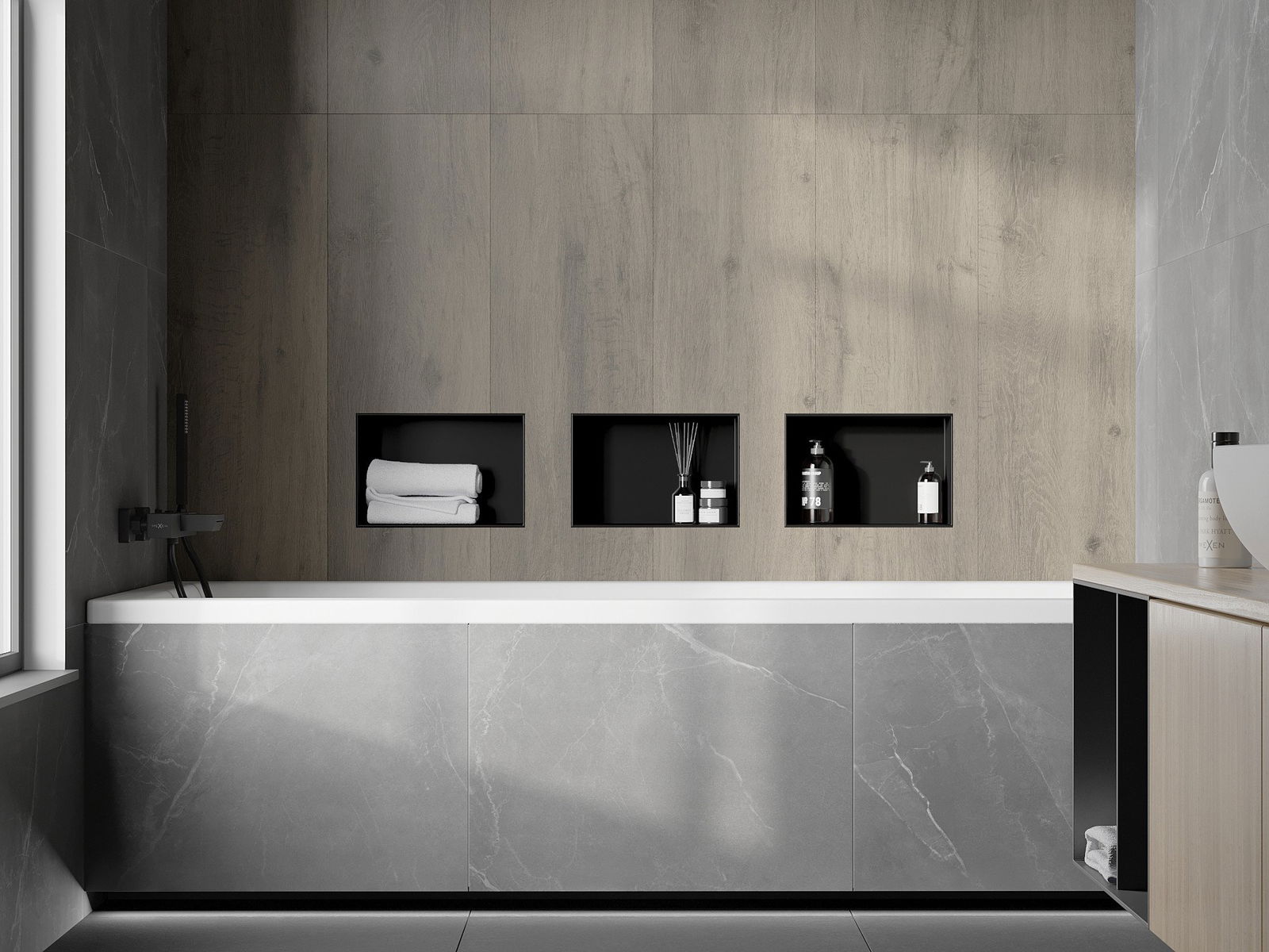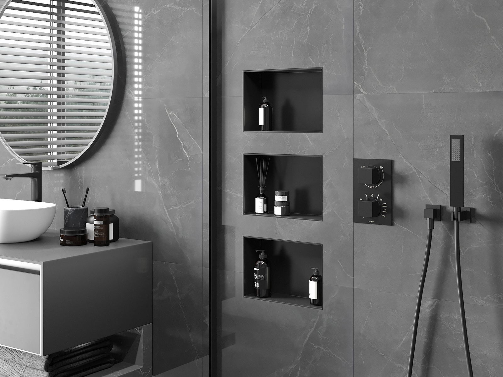 Möglichkeit der Installation in der Wand oder in einem speziell vorbereiteten Gebäude. Es ist eine äußerst moderne und funktionale Lösung, mit der Sie Platz sparen und das Produkt mit der Ästhetik des Innenraums anpassen und eine kohärente Komposition schaffen können.
