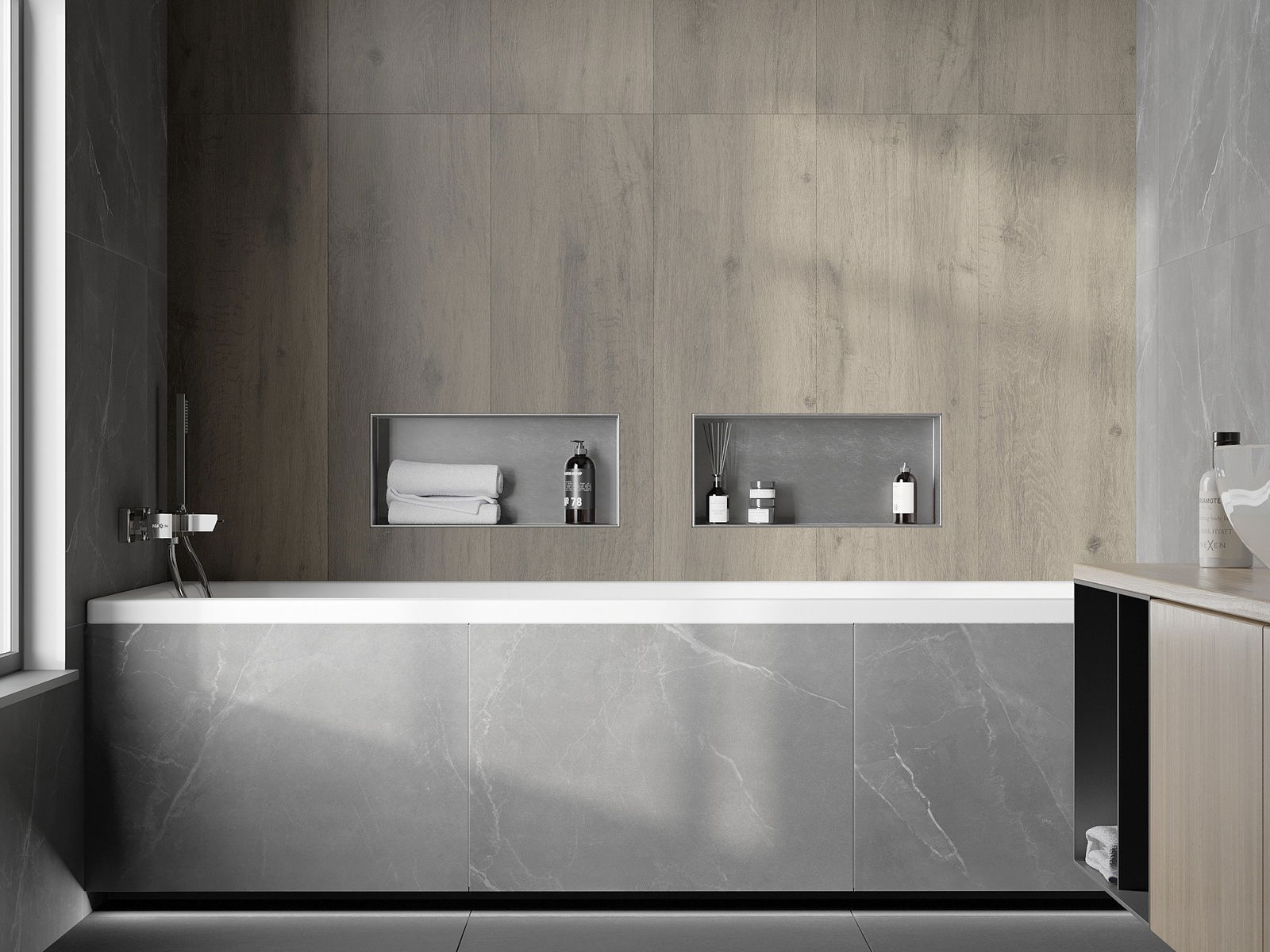 Möglichkeit der Installation in der Wand oder in einem speziell vorbereiteten Gebäude. Es ist eine äußerst moderne und funktionale Lösung, mit der Sie Platz sparen und das Produkt mit der Ästhetik des Innenraums anpassen und eine kohärente Komposition schaffen können.