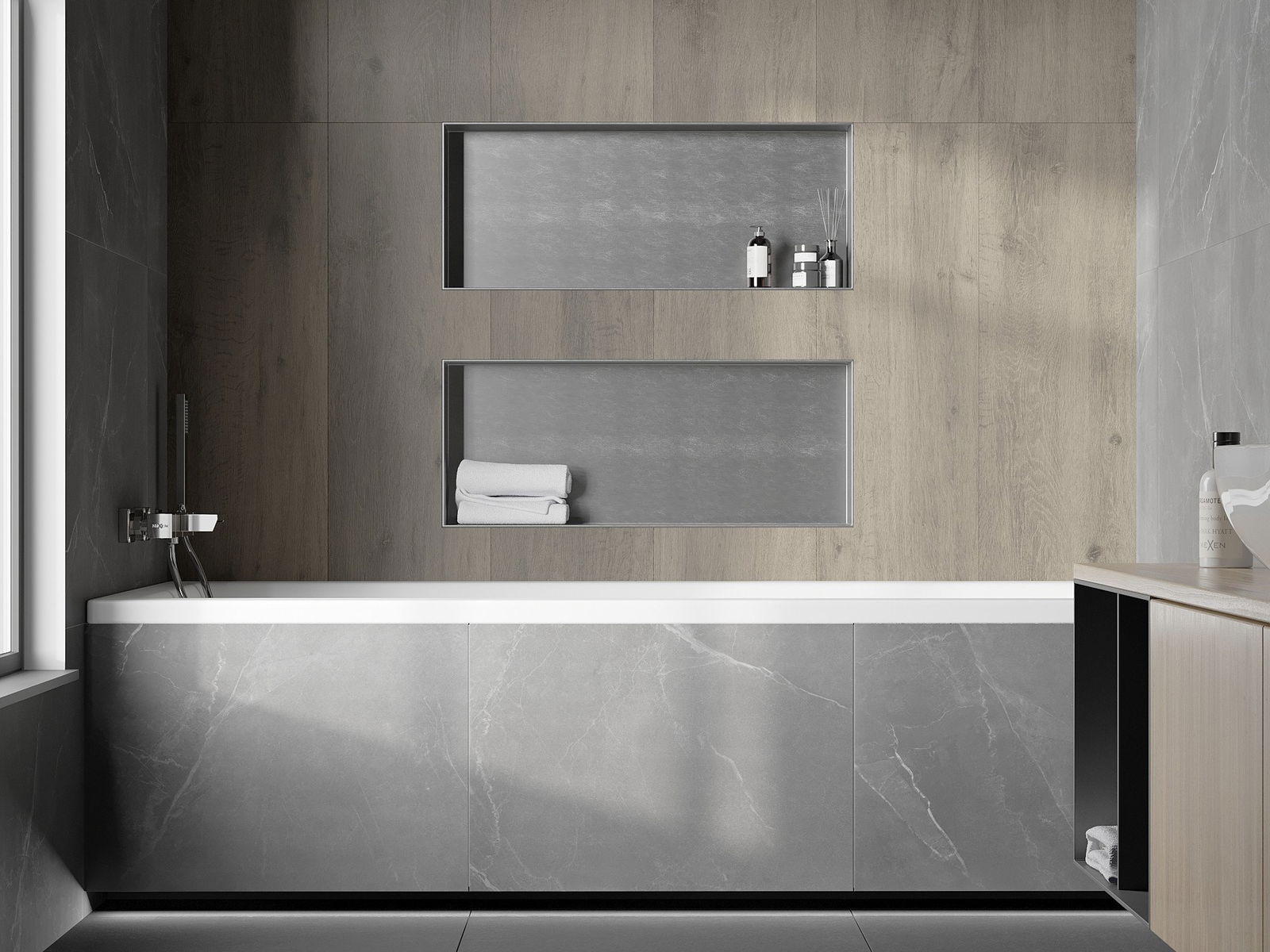 Möglichkeit der Installation in der Wand oder in einem speziell vorbereiteten Gebäude. Es ist eine äußerst moderne und funktionale Lösung, mit der Sie Platz sparen und das Produkt mit der Ästhetik des Innenraums anpassen und eine kohärente Komposition schaffen können.