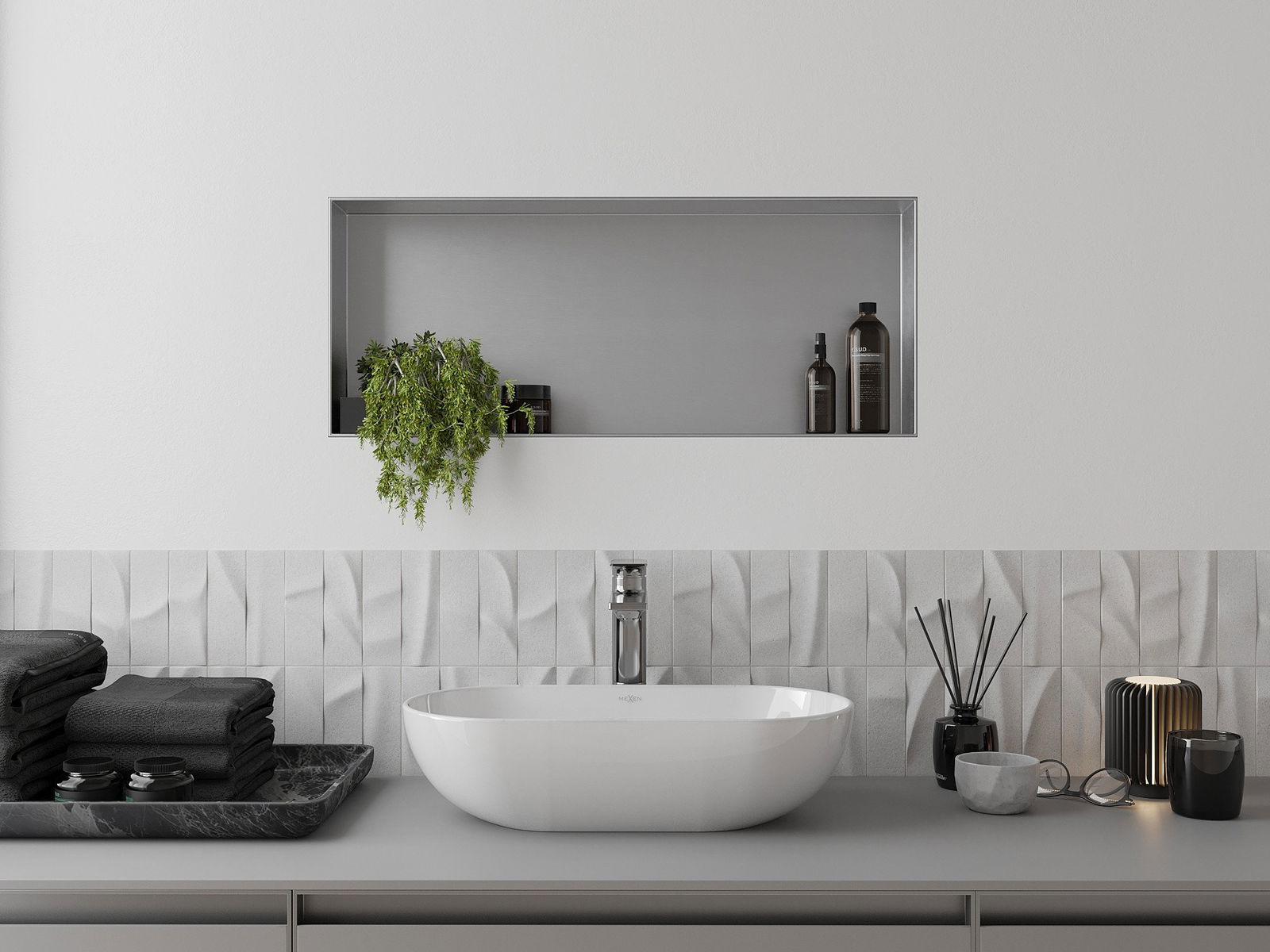 Mexen X-Wall-NR Nischenregal ohne Verkleidung 75 x 30 cm, Inox - 1911753010