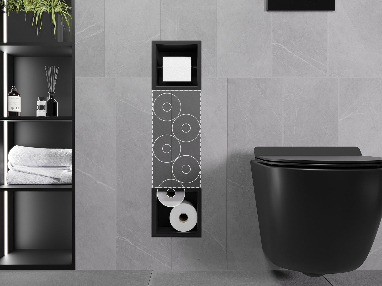 X-Wall ist ein praktischer Toilettenpapierhalter mit einem in die Wand eingebauten Lagerhaus. Die neue Rolle ist immer an Ihren Fingerspitzen und der zuvor für die Aufbewahrung von Toilettenpapier bestimmte Ort kann auf andere Weise verwendet werden.