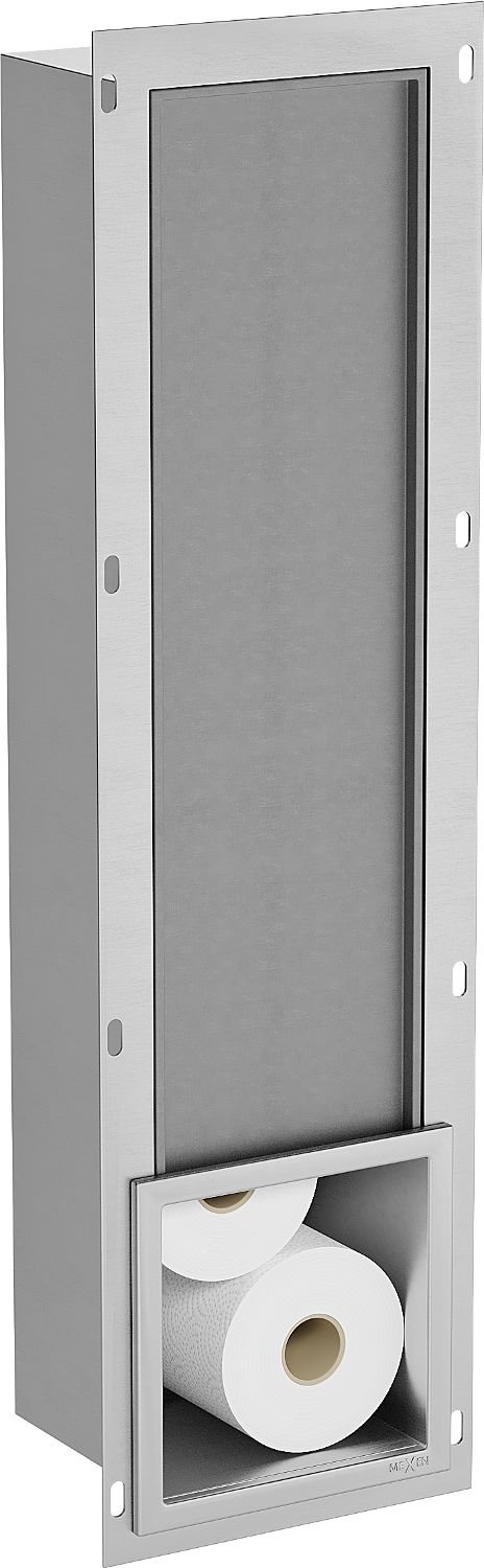 X-Wall ist ein praktischer Toilettenpapierhalter mit einem in die Wand eingebauten Lagerhaus. Die neue Rolle ist immer an Ihren Fingerspitzen und der zuvor für die Aufbewahrung von Toilettenpapier bestimmte Ort kann auf andere Weise verwendet werden.