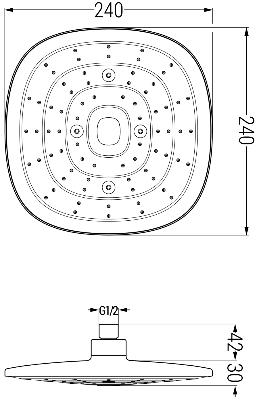 Der Regenduschkopf verfügt über Gummidüsen, die Kalkablagerungen verhindern
