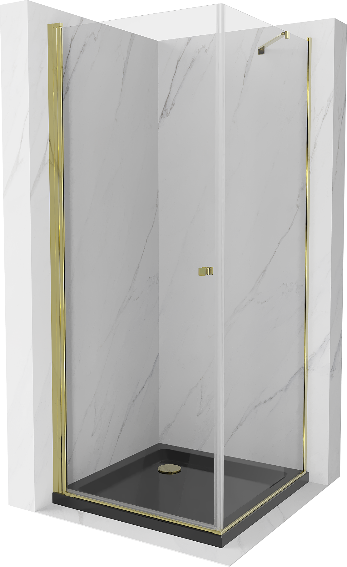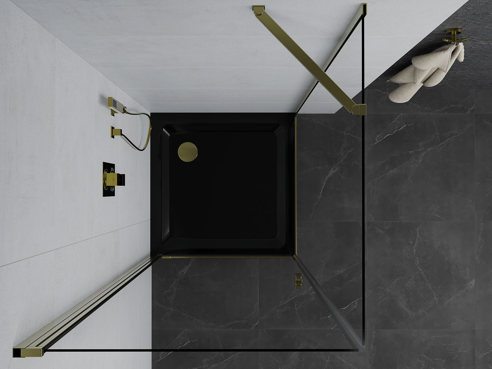Mexen Pretoria Duschkabine 70 x 70 cm, transparent, gold + Flat Duschwanne, schwarz - 852-070-070-50-00-4070G