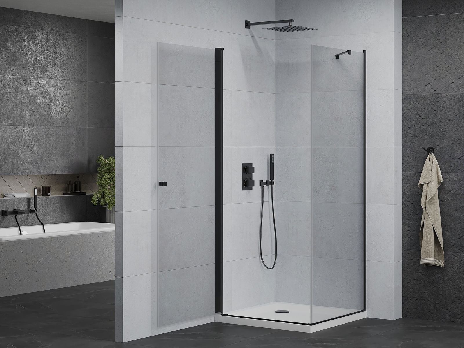 Der praktische und bequeme Griff bestand aus langlebigem und widerstandsfähigem Metall. Die modische Form in Kombination mit einem auf die Farbe der Profile zugeschnittenen Finish verleiht dem Ganzen einen modernen und stilvollen Look und betont die Ästhetik jedes Badezimmers.