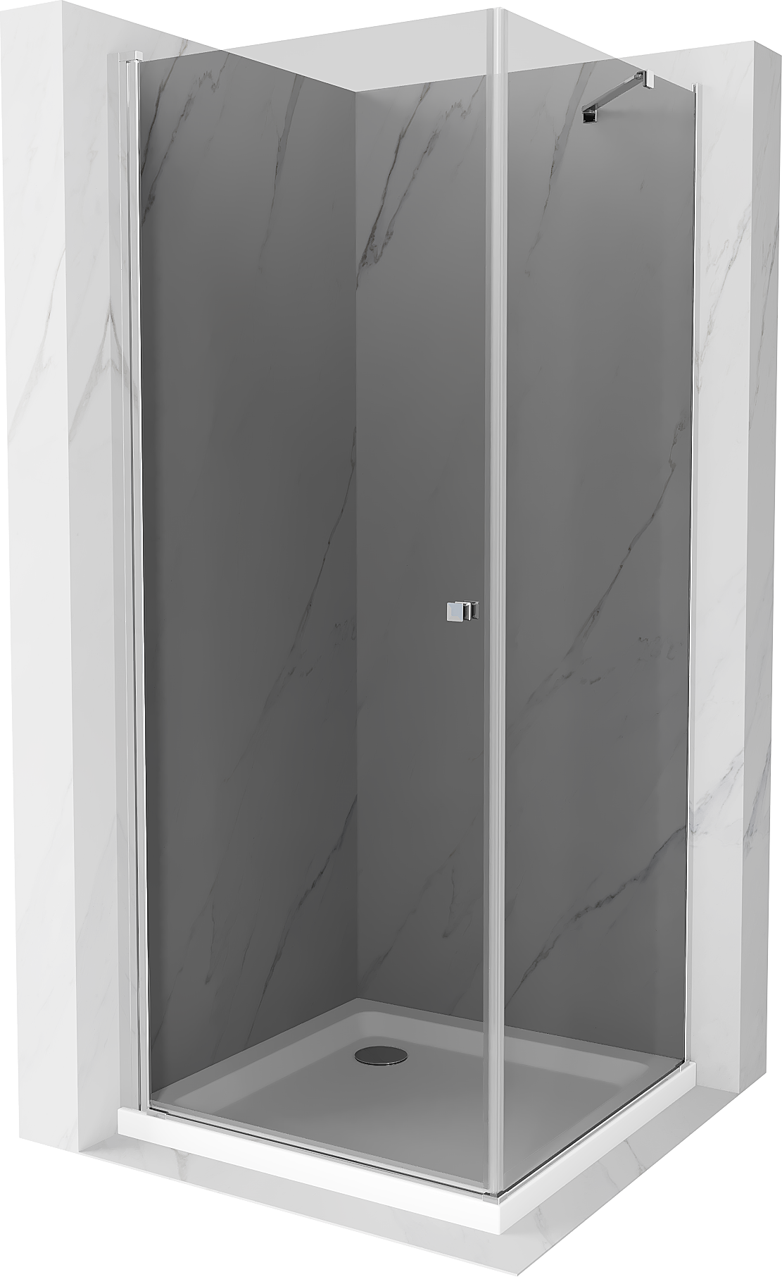Mexen Pretoria Duschkabine, schwenkbar 80 x 80 cm, Graphit, Chrom + Duschwanne Flat - 852-080-080-01-40-4010