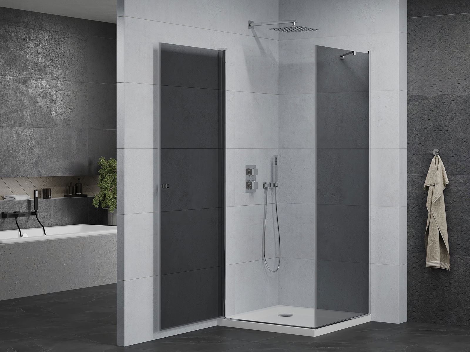 Dank der Verwendung eines universellen Montagesystems können die Duschtüren je nach Ihren Bedürfnissen rechts oder links montiert werden. Dank dessen können Sie problemlos eine Dusche entwerfen, die auf den Raum des Badezimmers zugeschnitten ist.