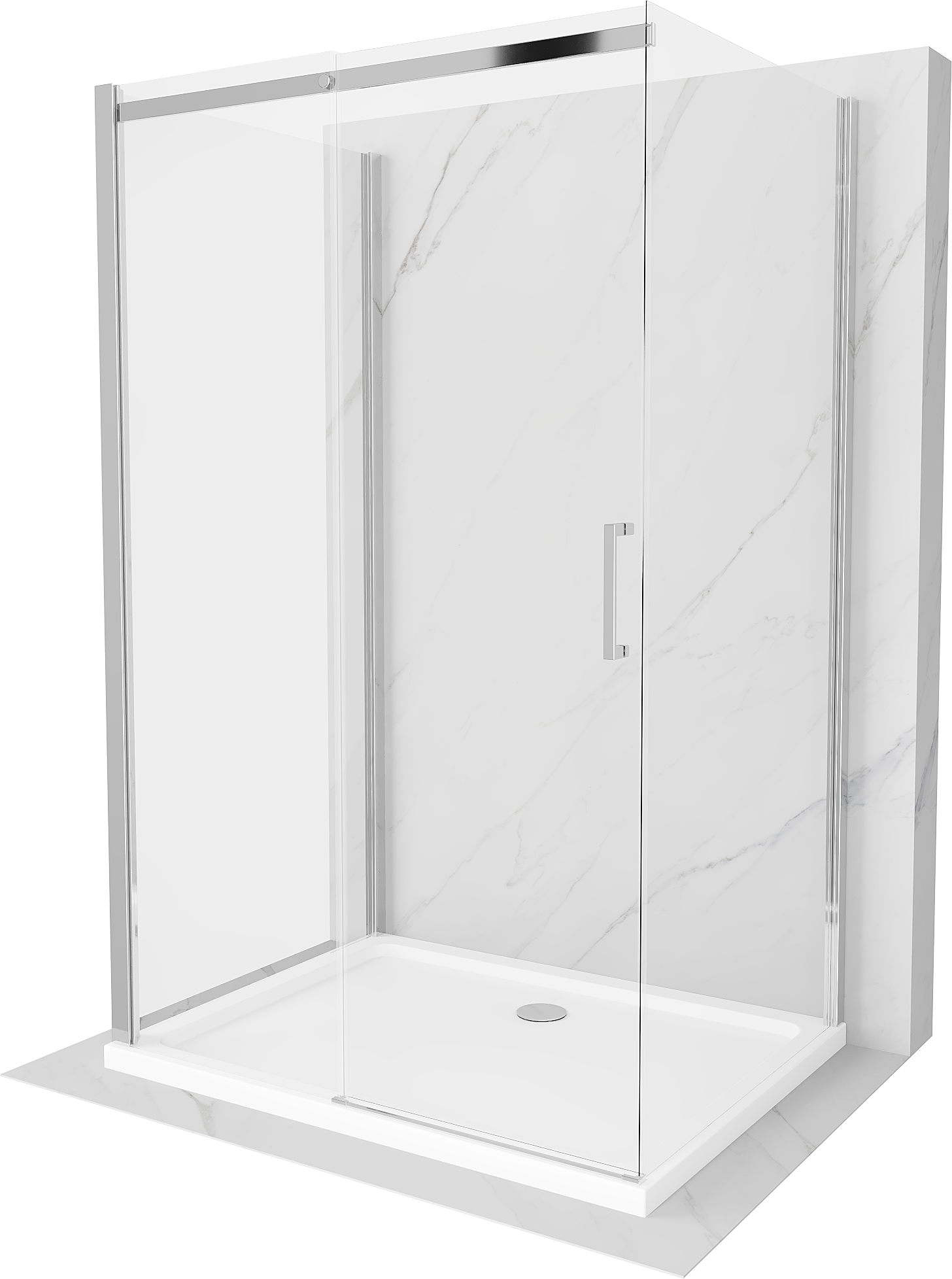Mexen Omega-3S 3-seitige Duschkabine, Schiebetür 140x90 cm, transparent, Chrom + Duschwanne Flat - 825-140-090-01-00-3s-4010