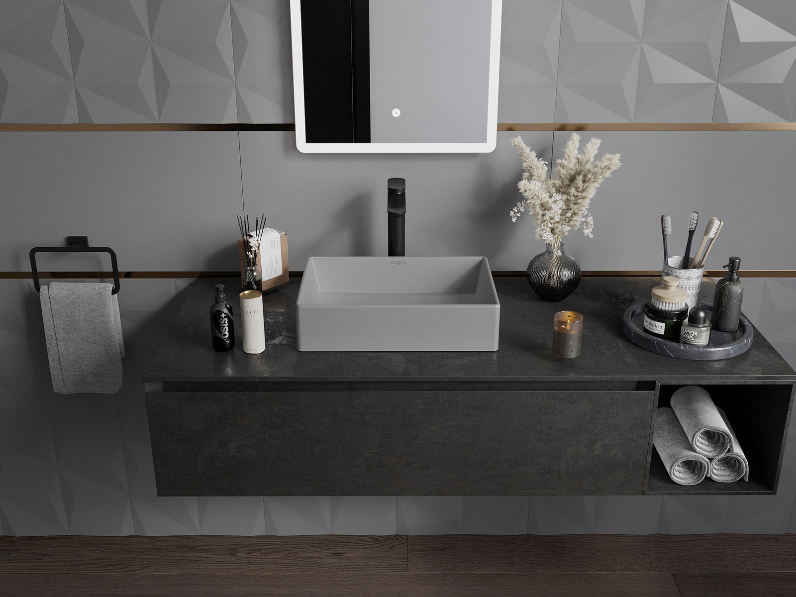 Die matte Oberfläche der Keramik betont perfekt die Art der Produktfarbe und verleiht ihr ein einzigartiges und ausdrucksstarkes Finish. Die subtile Struktur der matten Keramik führt die Eleganz ins Badezimmer ein und schafft einen ästhetischen Raum.