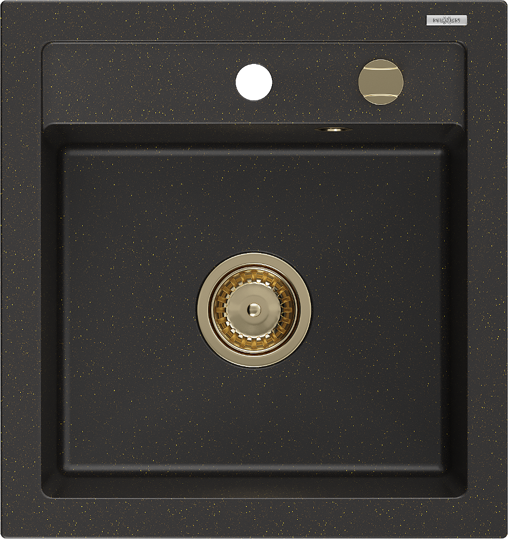 Die Spüle besteht aus hochwertigem Granit. Es ist eine elegante und vor allem praktische Ergänzung zu jeder Küche, unabhängig von ihrem Stil. Hohe Qualität und Granitdauer sorgen für eine langjährige Nutzung.