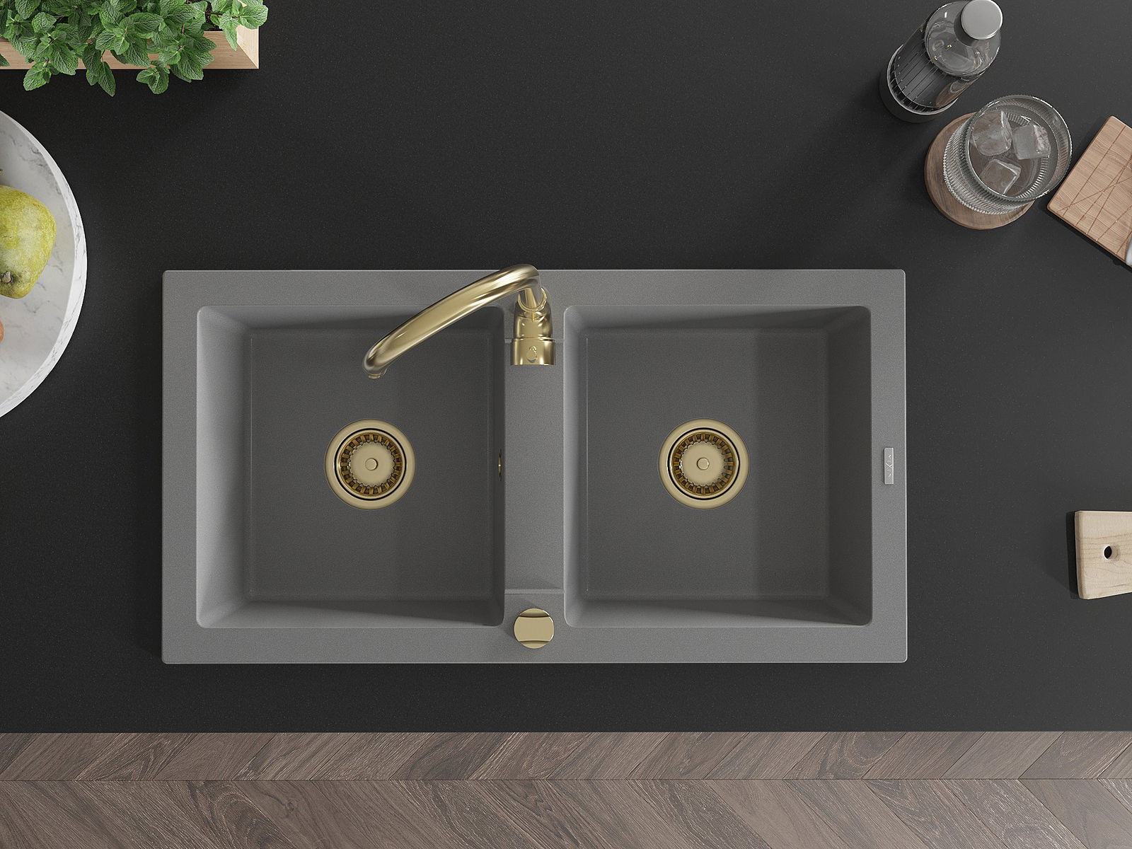 Die Spüle besteht aus hochwertigem Granit. Es ist eine elegante und vor allem praktische Ergänzung zu jeder Küche, unabhängig von ihrem Stil. Hohe Qualität und Granitdauer sorgen für eine langjährige Nutzung.