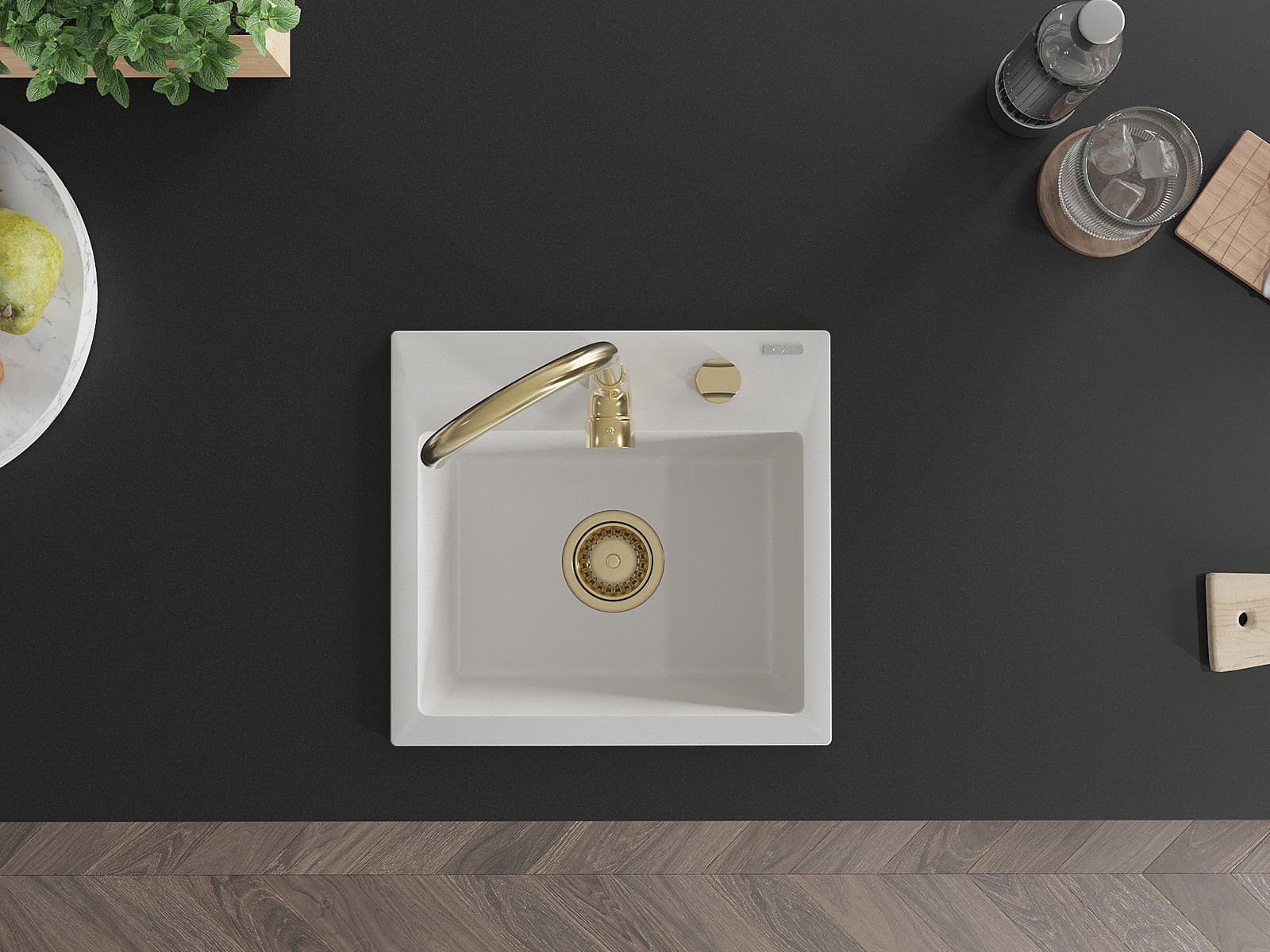 Die Spüle besteht aus hochwertigem Granit. Es ist eine elegante und vor allem praktische Ergänzung zu jeder Küche, unabhängig von ihrem Stil. Hohe Qualität und Granitdauer sorgen für eine langjährige Nutzung.