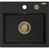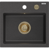 Die Spüle besteht aus hochwertigem Granit. Es ist eine elegante und vor allem praktische Ergänzung zu jeder Küche, unabhängig von ihrem Stil. Hohe Qualität und Granitdauer sorgen für eine langjährige Nutzung.