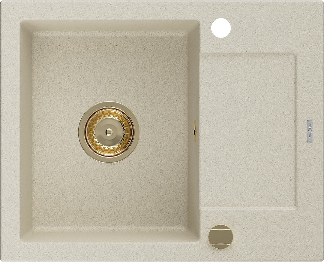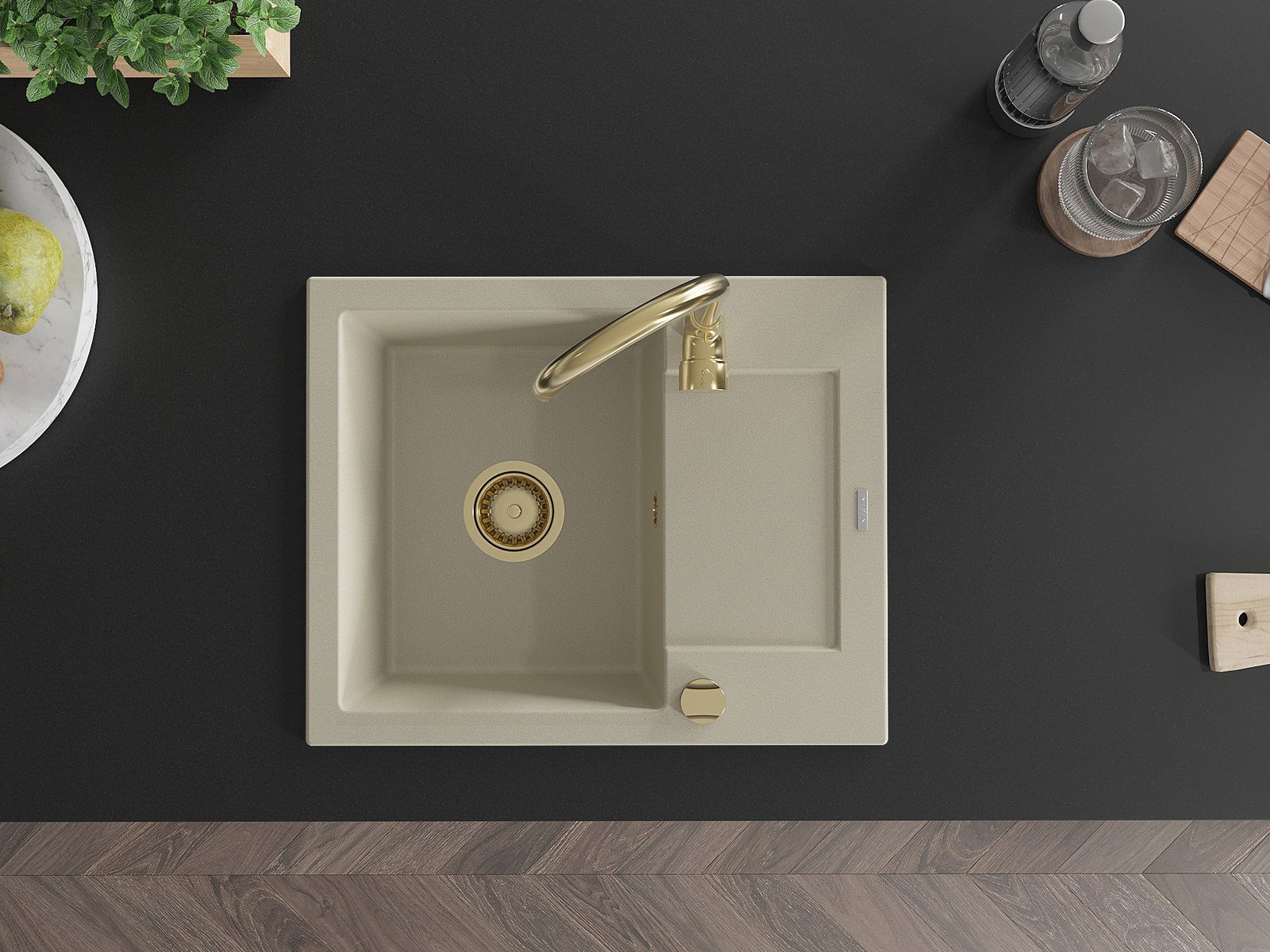 Die Spüle besteht aus hochwertigem Granit. Es ist eine elegante und vor allem praktische Ergänzung zu jeder Küche, unabhängig von ihrem Stil. Hohe Qualität und Granitdauer sorgen für eine langjährige Nutzung.