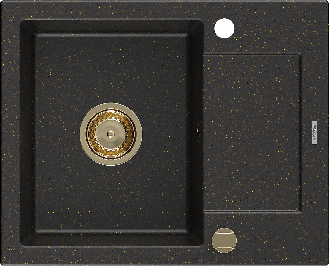 Die Spüle besteht aus hochwertigem Granit. Es ist eine elegante und vor allem praktische Ergänzung zu jeder Küche, unabhängig von ihrem Stil. Hohe Qualität und Granitdauer sorgen für eine langjährige Nutzung.