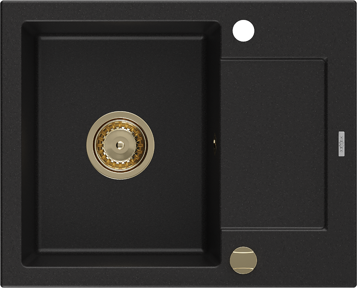Die Spüle besteht aus hochwertigem Granit. Es ist eine elegante und vor allem praktische Ergänzung zu jeder Küche, unabhängig von ihrem Stil. Hohe Qualität und Granitdauer sorgen für eine langjährige Nutzung.