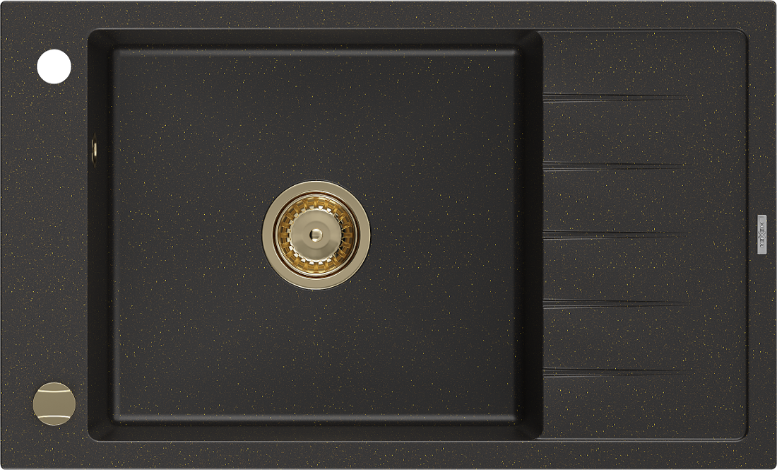 Die Spüle besteht aus hochwertigem Granit. Es ist eine elegante und vor allem praktische Ergänzung zu jeder Küche, unabhängig von ihrem Stil. Hohe Qualität und Granitdauer sorgen für eine langjährige Nutzung.