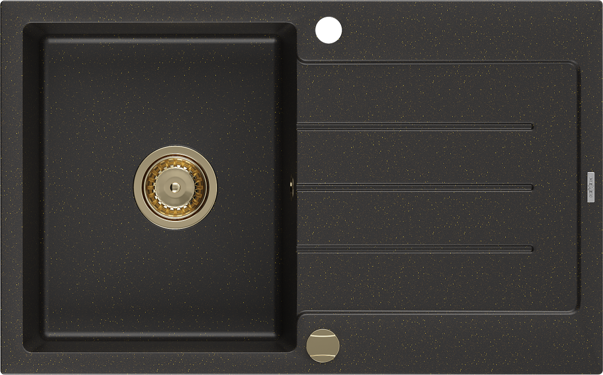 Die Spüle besteht aus hochwertigem Granit. Es ist eine elegante und vor allem praktische Ergänzung zu jeder Küche, unabhängig von ihrem Stil. Hohe Qualität und Granitdauer sorgen für eine langjährige Nutzung.