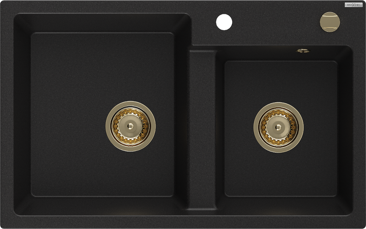 Die Spüle besteht aus hochwertigem Granit. Es ist eine elegante und vor allem praktische Ergänzung zu jeder Küche, unabhängig von ihrem Stil. Hohe Qualität und Granitdauer sorgen für eine langjährige Nutzung.