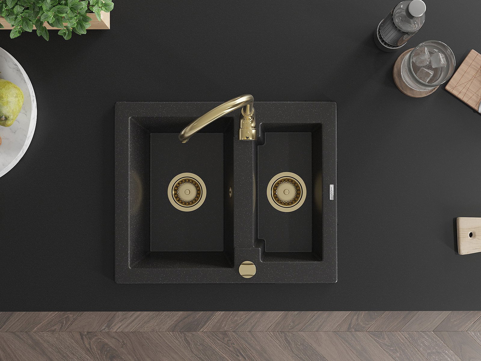 Die Spüle besteht aus hochwertigem Granit. Es ist eine elegante und vor allem praktische Ergänzung zu jeder Küche, unabhängig von ihrem Stil. Hohe Qualität und Granitdauer sorgen für eine langjährige Nutzung.