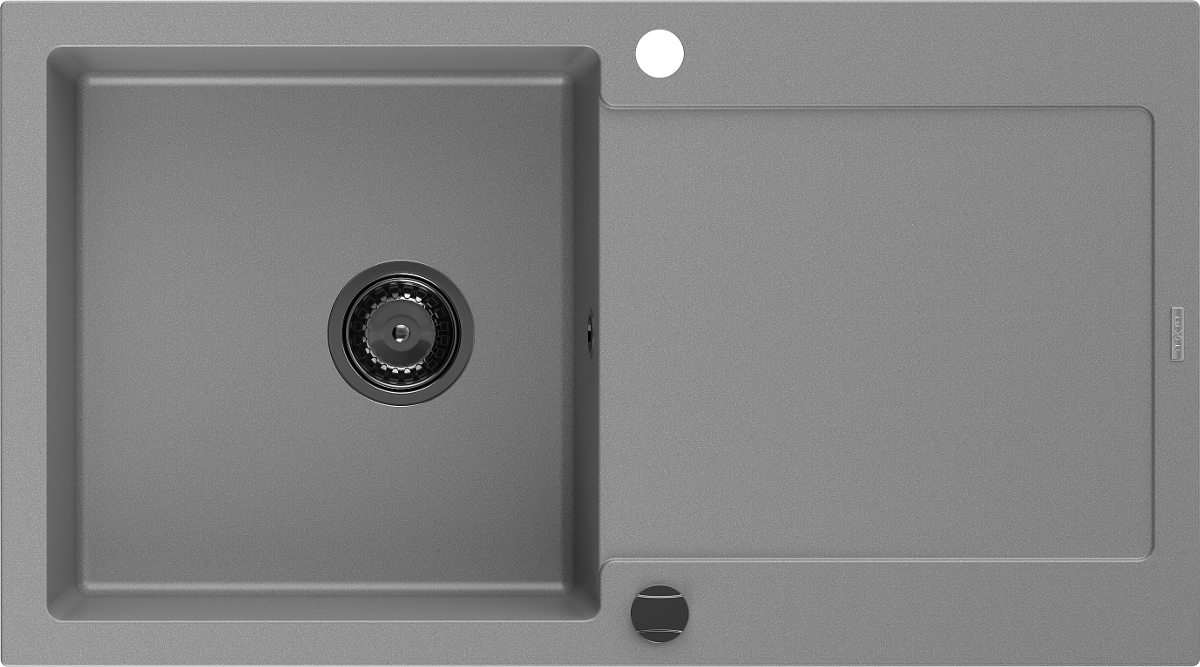 Die Spüle besteht aus hochwertigem Granit. Es ist eine elegante und vor allem praktische Ergänzung zu jeder Küche, unabhängig von ihrem Stil. Hohe Qualität und Granitdauer sorgen für eine langjährige Nutzung.
