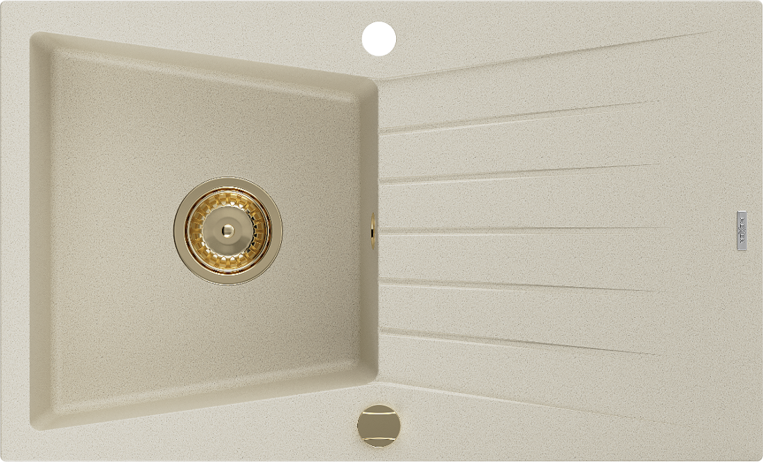Die Spüle besteht aus hochwertigem Granit. Es ist eine elegante und vor allem praktische Ergänzung zu jeder Küche, unabhängig von ihrem Stil. Hohe Qualität und Granitdauer sorgen für eine langjährige Nutzung.