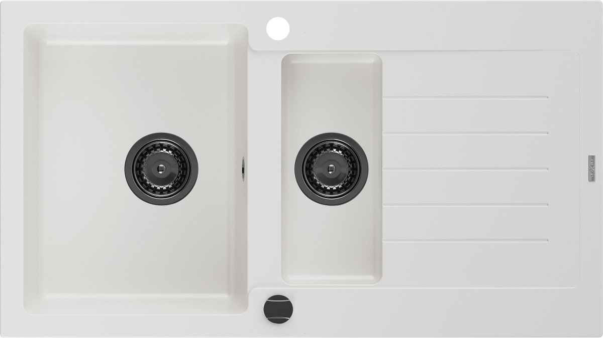 Dank des universellen Montagesystems ist die Spüle reversibel und der Abfluss kann links oder rechts auf der Theke montiert werden. Auf diese Weise können Sie die Seite einfach an Ihre Bedürfnisse und Bedingungen einstellen.