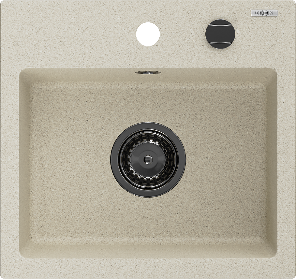 Die Spüle besteht aus hochwertigem Granit. Es ist eine elegante und vor allem praktische Ergänzung zu jeder Küche, unabhängig von ihrem Stil. Hohe Qualität und Granitdauer sorgen für eine langjährige Nutzung.