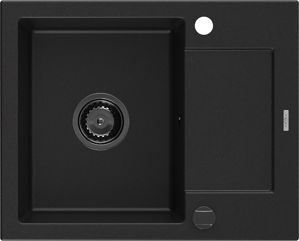 Die Spüle besteht aus hochwertigem Granit. Es ist eine elegante und vor allem praktische Ergänzung zu jeder Küche, unabhängig von ihrem Stil. Hohe Qualität und Granitdauer sorgen für eine langjährige Nutzung.