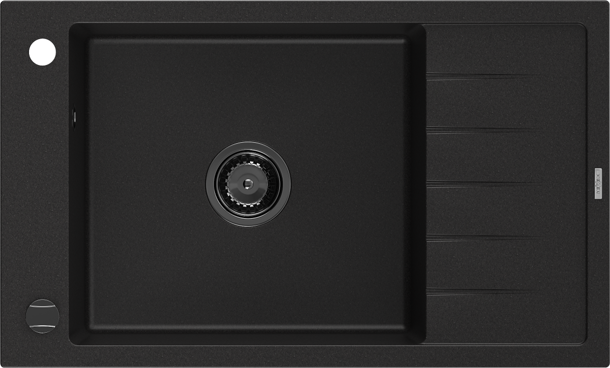 Die Spüle besteht aus hochwertigem Granit. Es ist eine elegante und vor allem praktische Ergänzung zu jeder Küche, unabhängig von ihrem Stil. Hohe Qualität und Granitdauer sorgen für eine langjährige Nutzung.