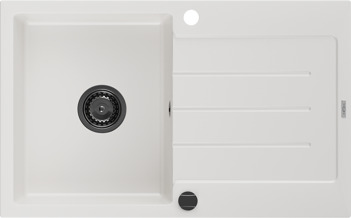 Die Spüle besteht aus hochwertigem Granit. Es ist eine elegante und vor allem praktische Ergänzung zu jeder Küche, unabhängig von ihrem Stil. Hohe Qualität und Granitdauer sorgen für eine langjährige Nutzung.