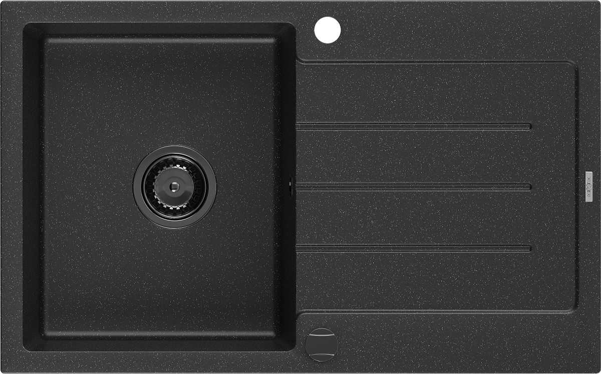Die Spüle besteht aus hochwertigem Granit. Es ist eine elegante und vor allem praktische Ergänzung zu jeder Küche, unabhängig von ihrem Stil. Hohe Qualität und Granitdauer sorgen für eine langjährige Nutzung.