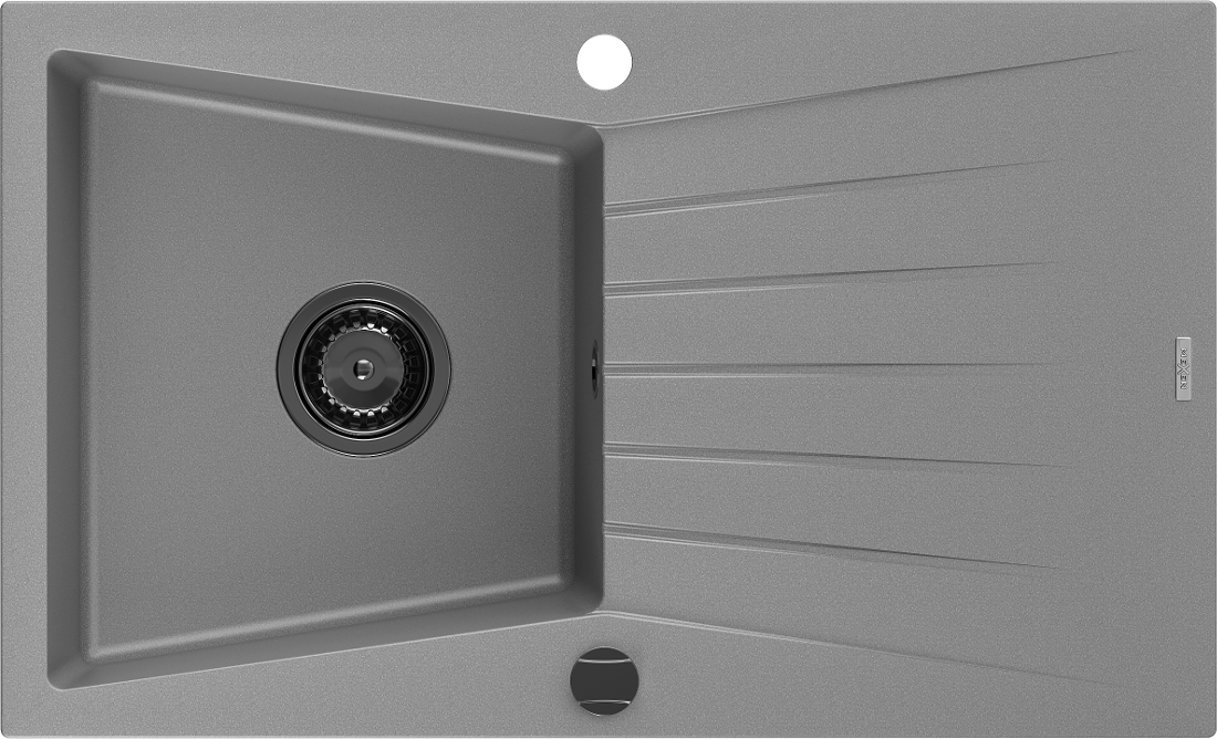 Die Spüle besteht aus hochwertigem Granit. Es ist eine elegante und vor allem praktische Ergänzung zu jeder Küche, unabhängig von ihrem Stil. Hohe Qualität und Granitdauer sorgen für eine langjährige Nutzung.