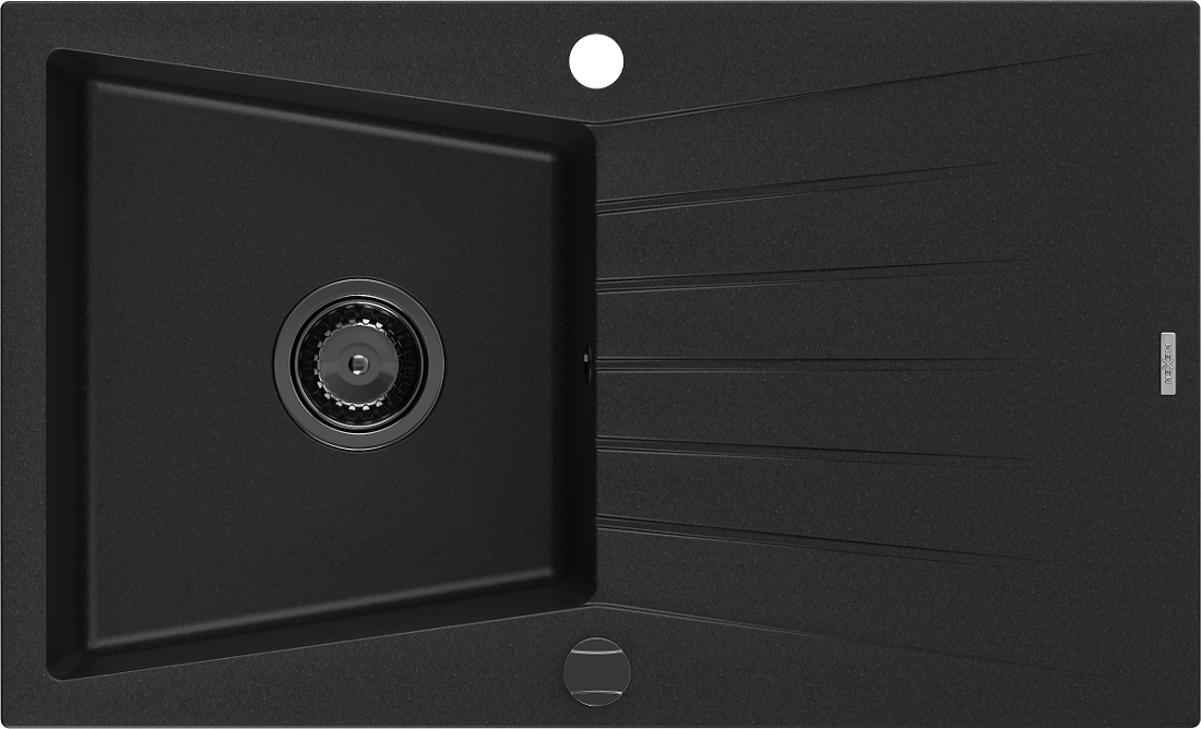 Die Spüle besteht aus hochwertigem Granit. Es ist eine elegante und vor allem praktische Ergänzung zu jeder Küche, unabhängig von ihrem Stil. Hohe Qualität und Granitdauer sorgen für eine langjährige Nutzung.