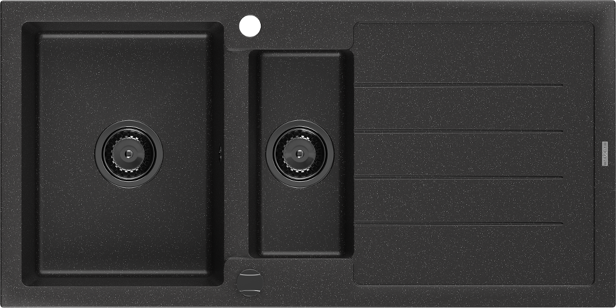 Die Spüle besteht aus hochwertigem Granit. Es ist eine elegante und vor allem praktische Ergänzung zu jeder Küche, unabhängig von ihrem Stil. Hohe Qualität und Granitdauer sorgen für eine langjährige Nutzung.