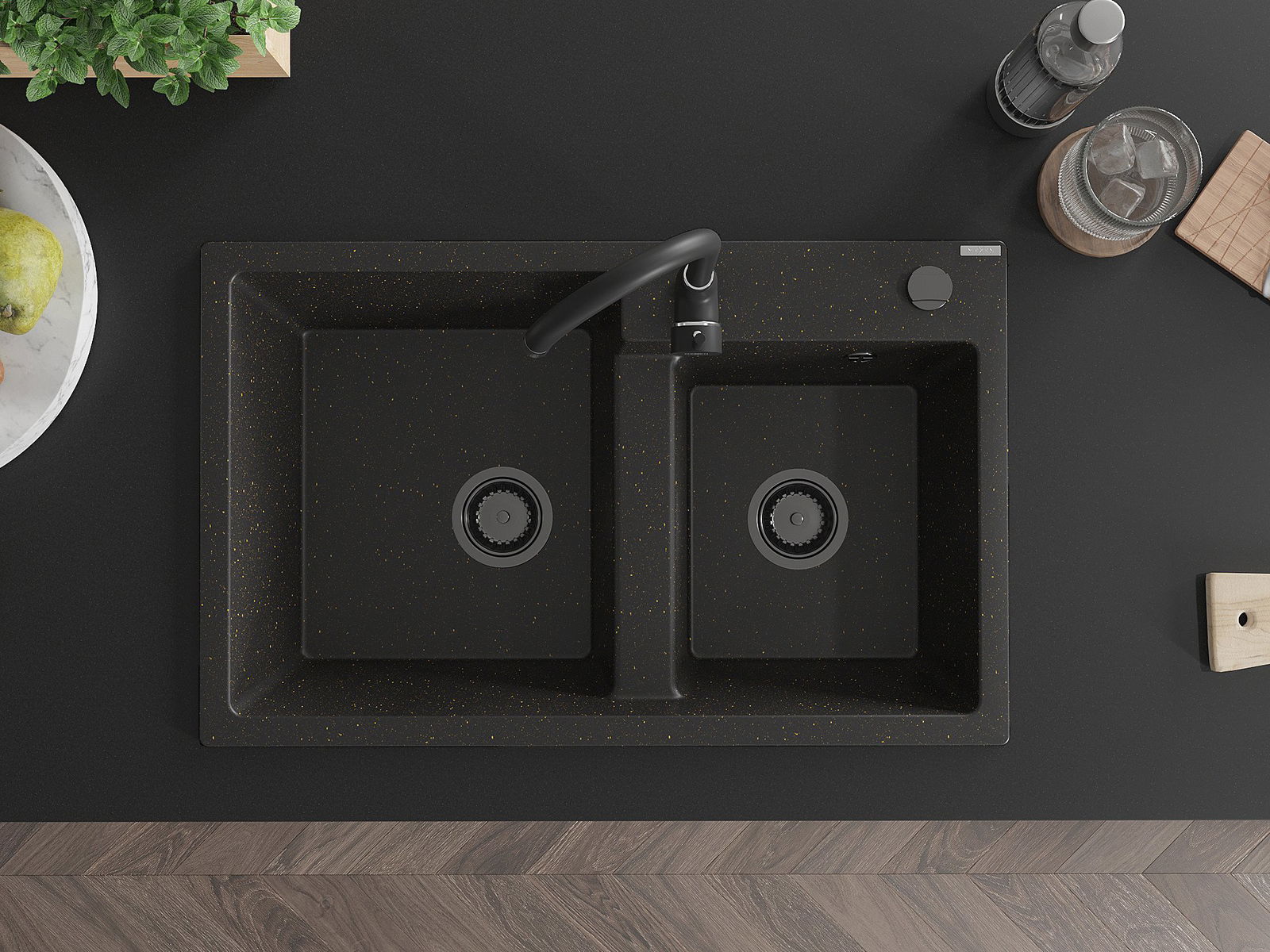 Die Spüle besteht aus hochwertigem Granit. Es ist eine elegante und vor allem praktische Ergänzung zu jeder Küche, unabhängig von ihrem Stil. Hohe Qualität und Granitdauer sorgen für eine langjährige Nutzung.